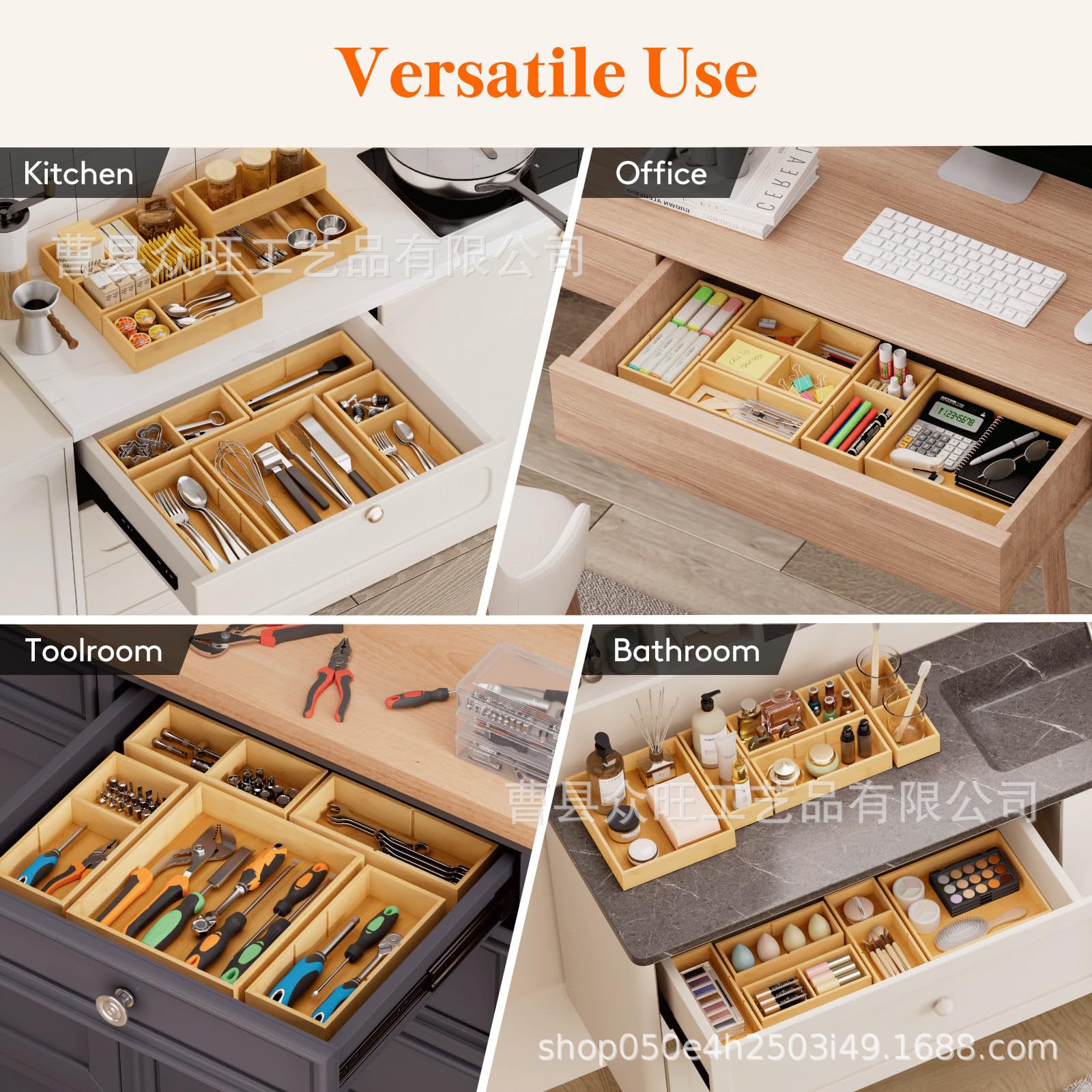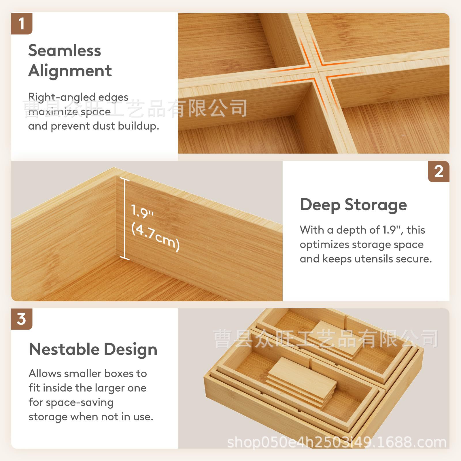 나무 서랍 주최자 대나무 나무 쌓을 수있는 보관 상자 데스크탑 조절 가능한 주최자 주방 식기 보관 상자