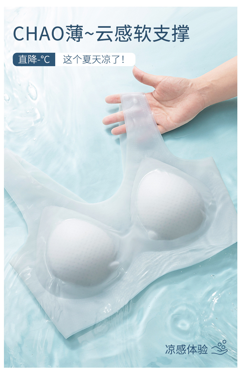 Yixing Yao 여름 아이스 실크 편안한 울트라 얇은 속옷 추적없는 한 조각 무테 젤리 소프트 지원 아름다운 뒷브라스토어 가기