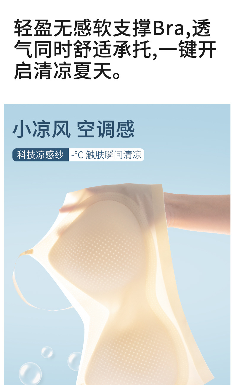 Yixing Yao 여름 아이스 실크 편안한 울트라 얇은 속옷 추적없는 한 조각 무테 젤리 소프트 지원 아름다운 뒷브라