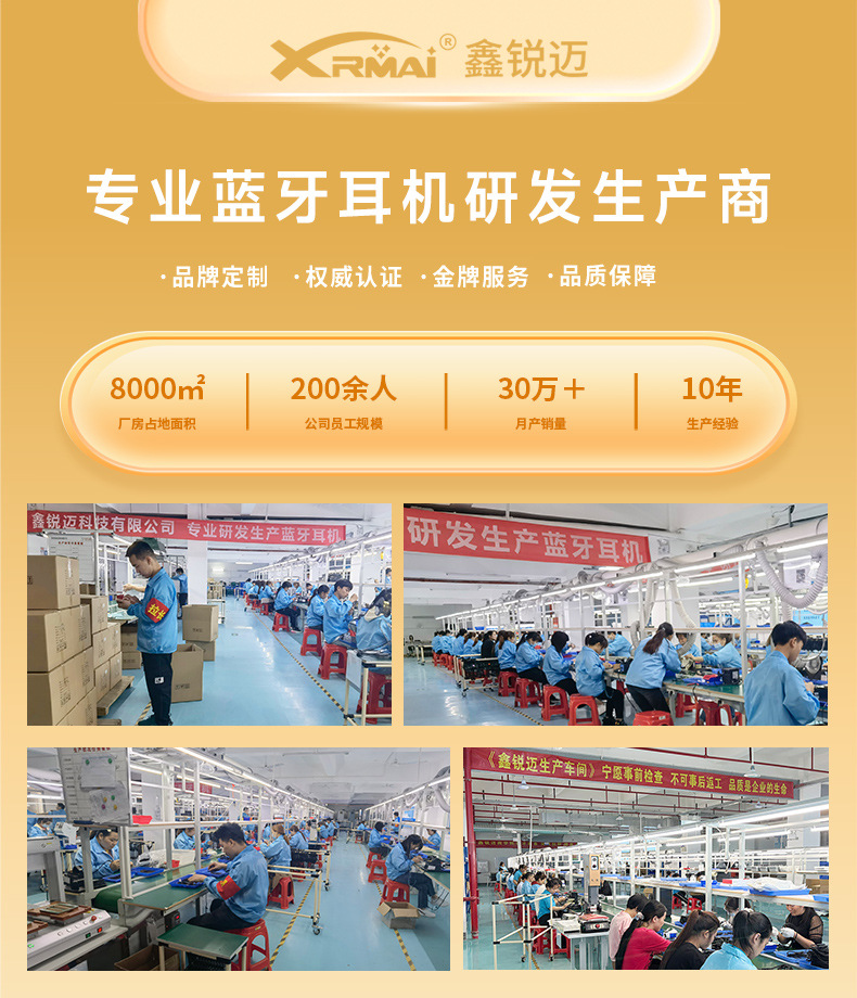 深圳市鑫锐迈科技有限公司是一家集研发设计、生产制造、销售服务于一体的企业,专注于研发蓝牙耳机产品,支持OEM/ODM开发定制等服务。
