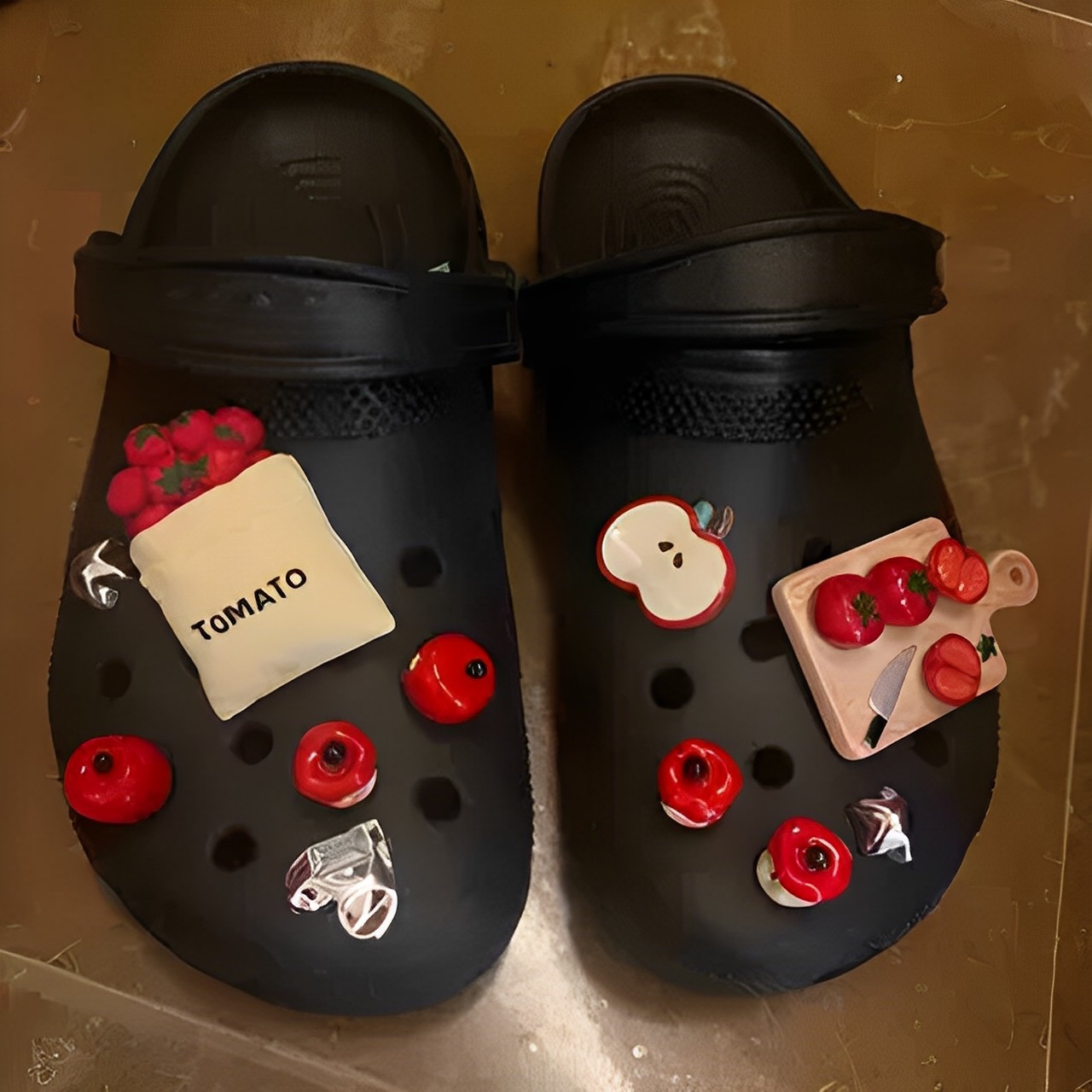 신발 버클이있는 동굴 신발 적합한 액세서리 3 차원 신발 꽃 분리 가능한 신발 버클 시뮬레이션 음식 놀이 사과 버클 도매