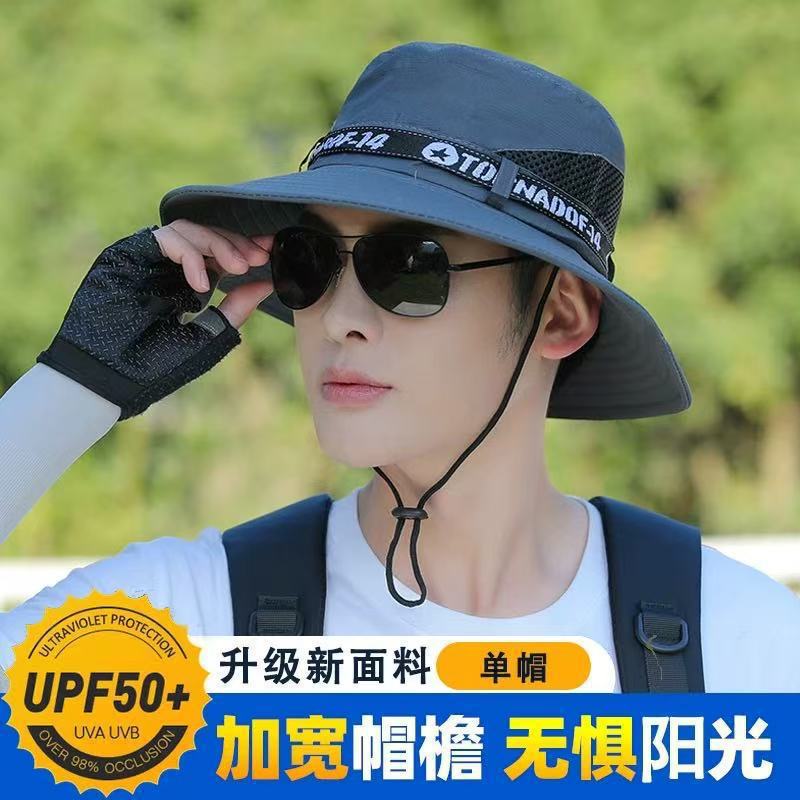 남성용 모자 2025 여름 어부 모자 자외선 차단 야외 자전거 타기 등산 자외선 방지 남성용 큰 챙 모자