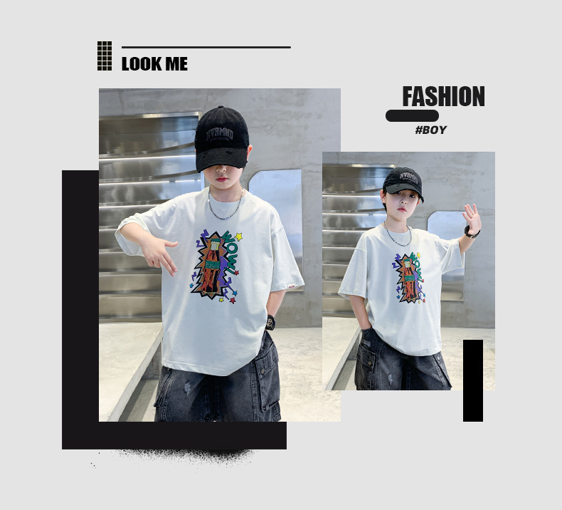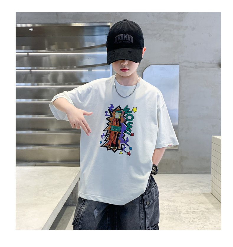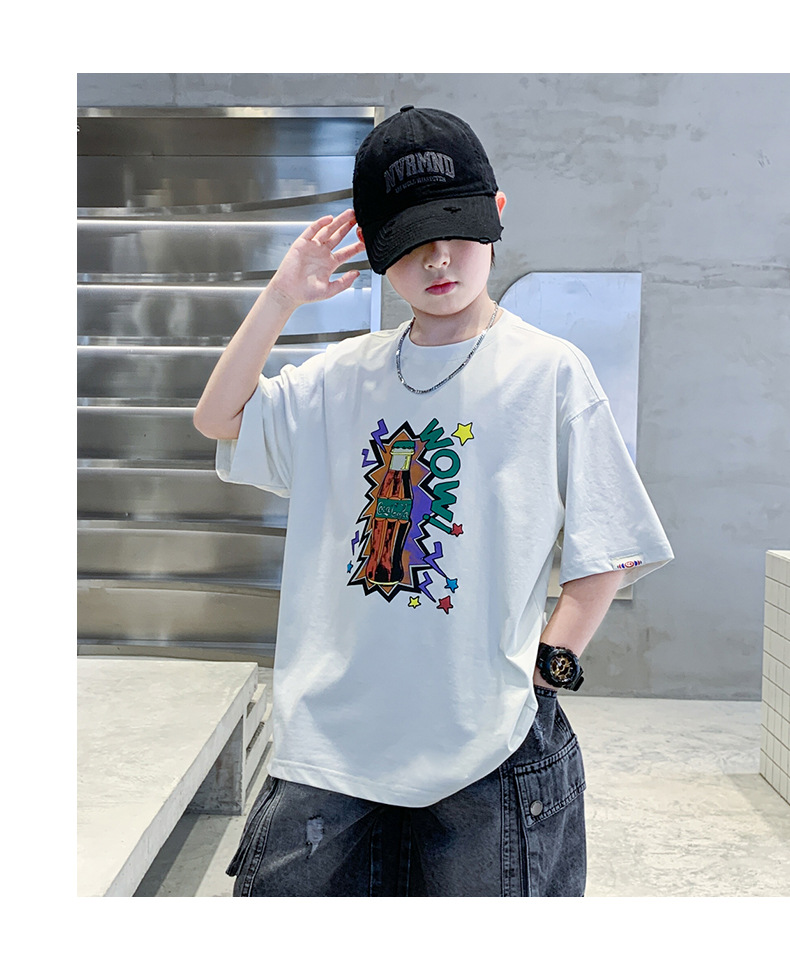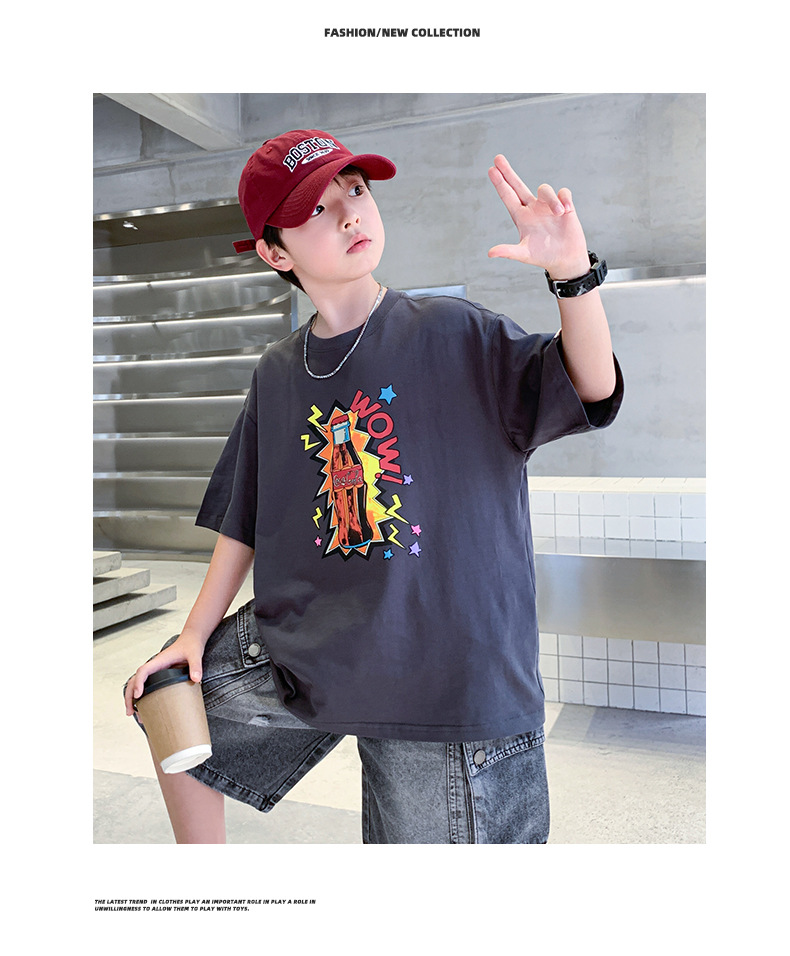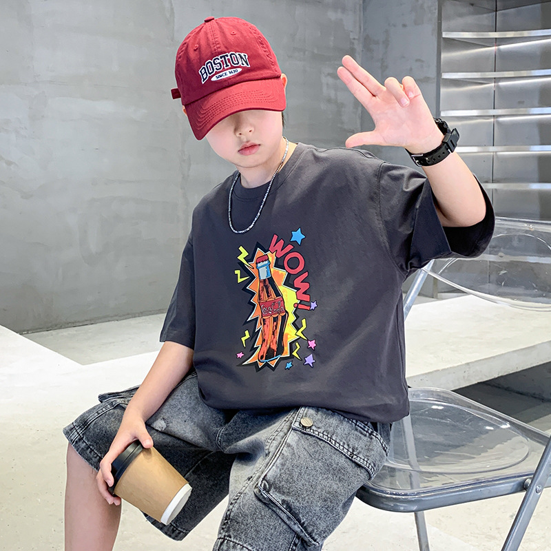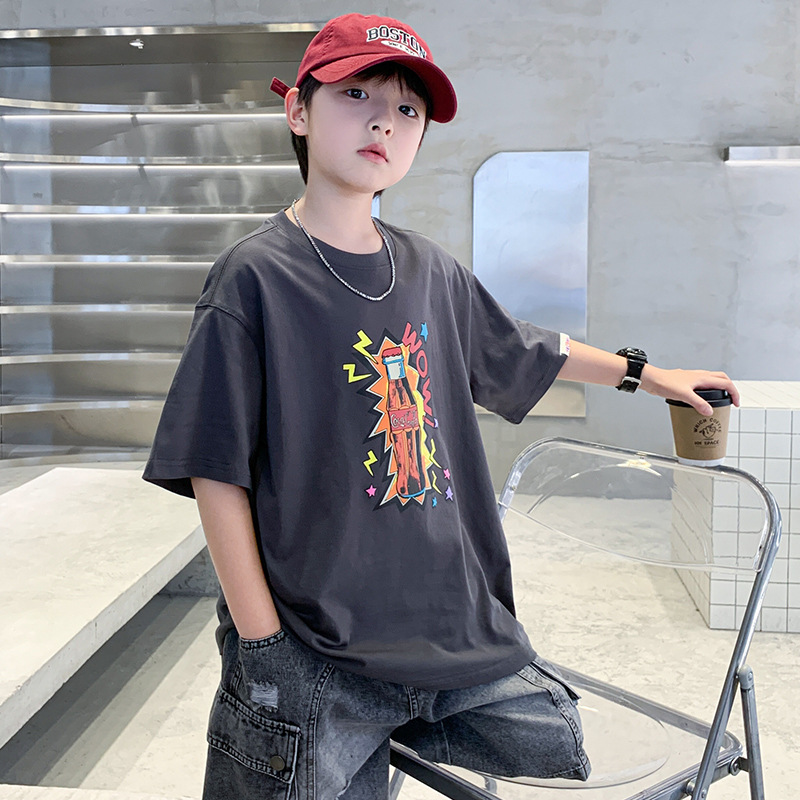 여름 소년 반팔 티셔츠 새로운 아동복 키즈 소년 만화 T 성격 트렌디 쿨 십대 반소매 탑 크로스