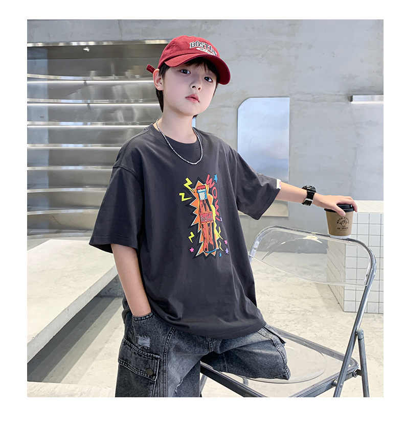 여름 소년 반팔 티셔츠 새로운 아동복 키즈 소년 만화 T 성격 트렌디 쿨 십대 반소매 탑 크로스스토어 가기