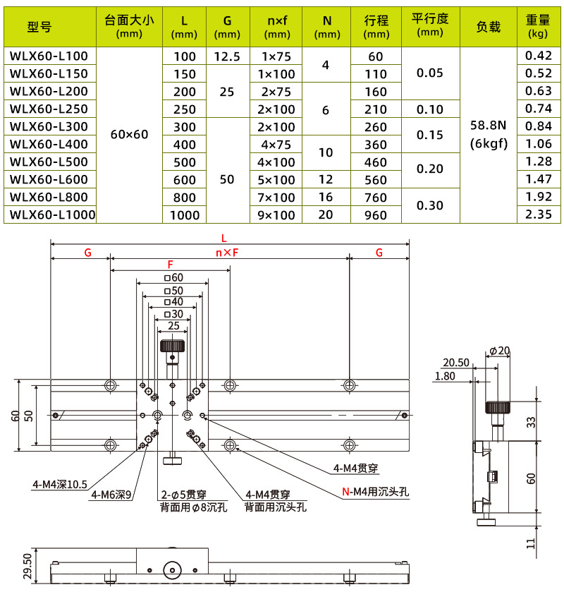 Xi Mu 마이크로 긴 스트로크 도브 테일 슬라이딩 테이블 LWX25/40/60 시리즈 모바일 플랫폼 미세 조정 슬라이딩 테이블