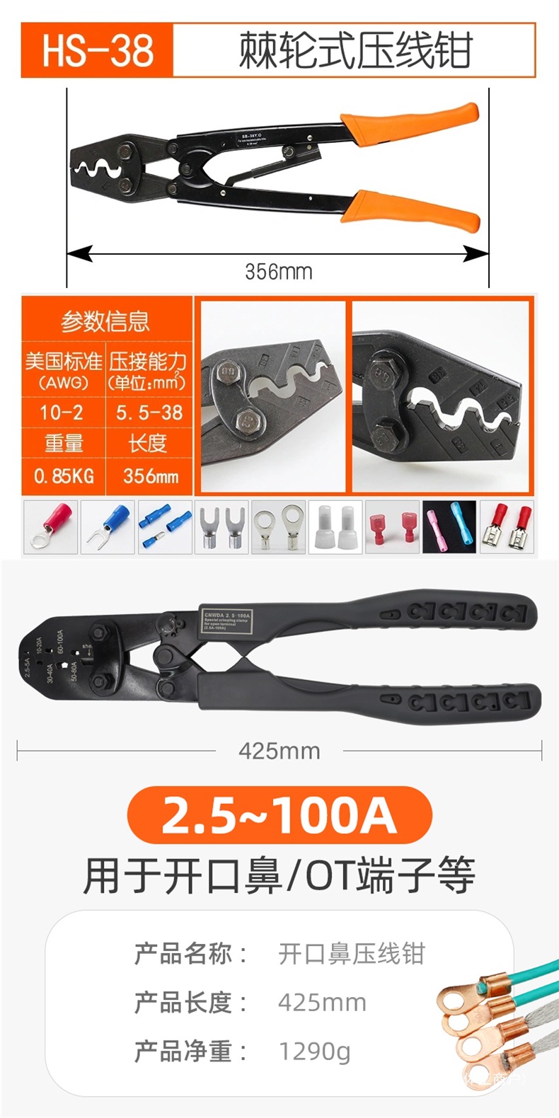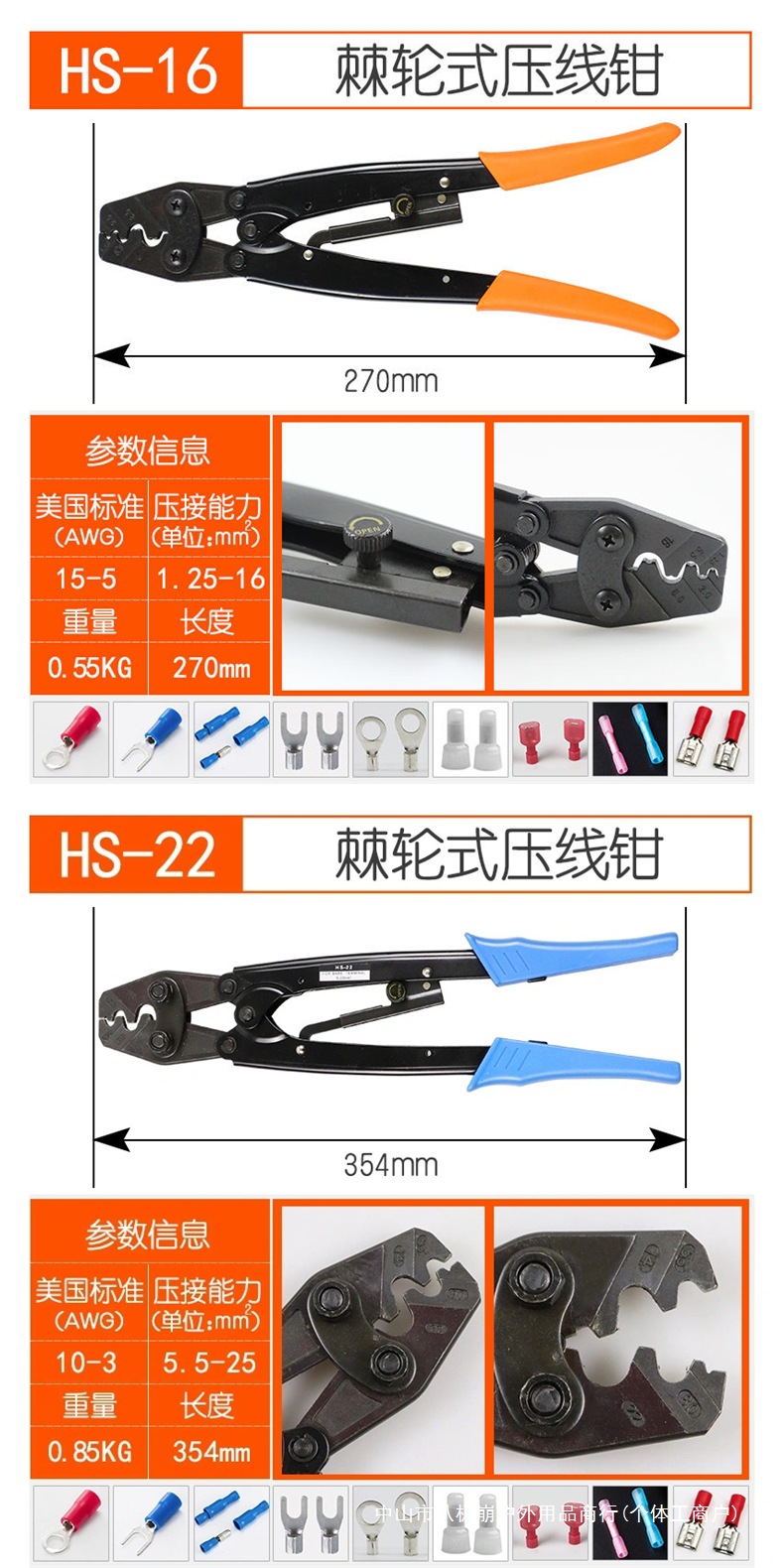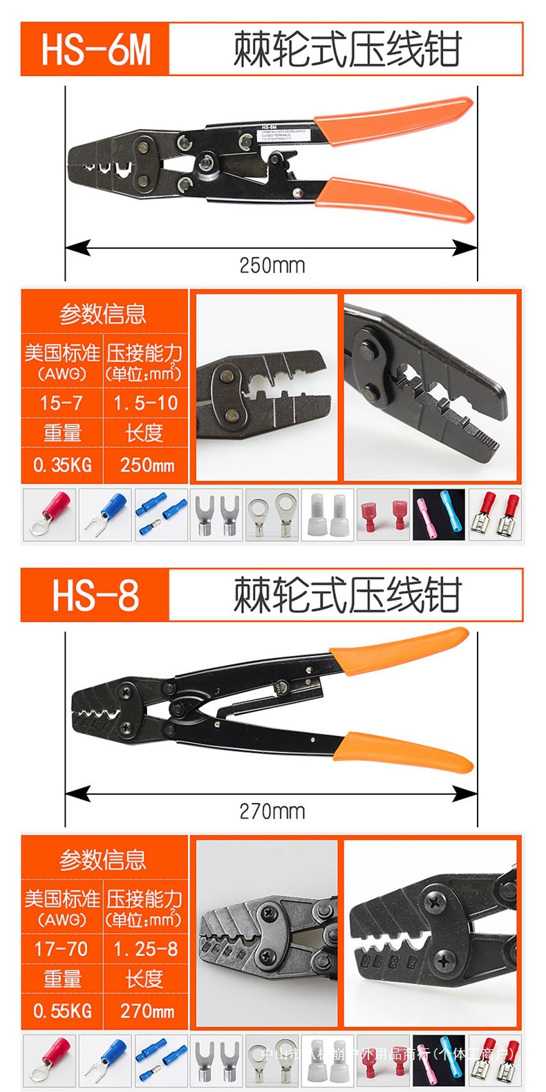 • HS-8(1.25-10평방미터)은 OT UT 베어 터미널만 누를 수 있습니다.