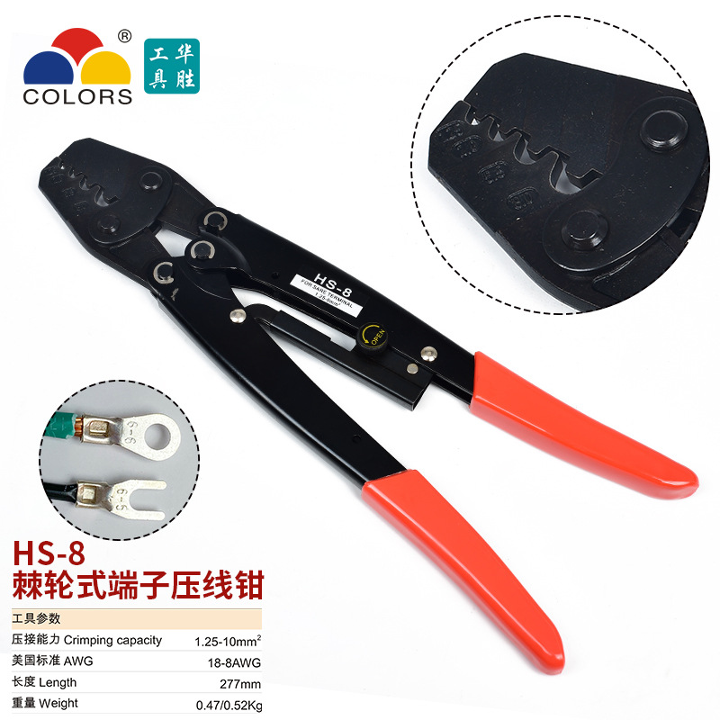 냉간 압착 플라이어 터미널 압착 펜치 구리 와이어 개방 구리 코 전기 배선 래칫 노동 절약 펜치 8 극