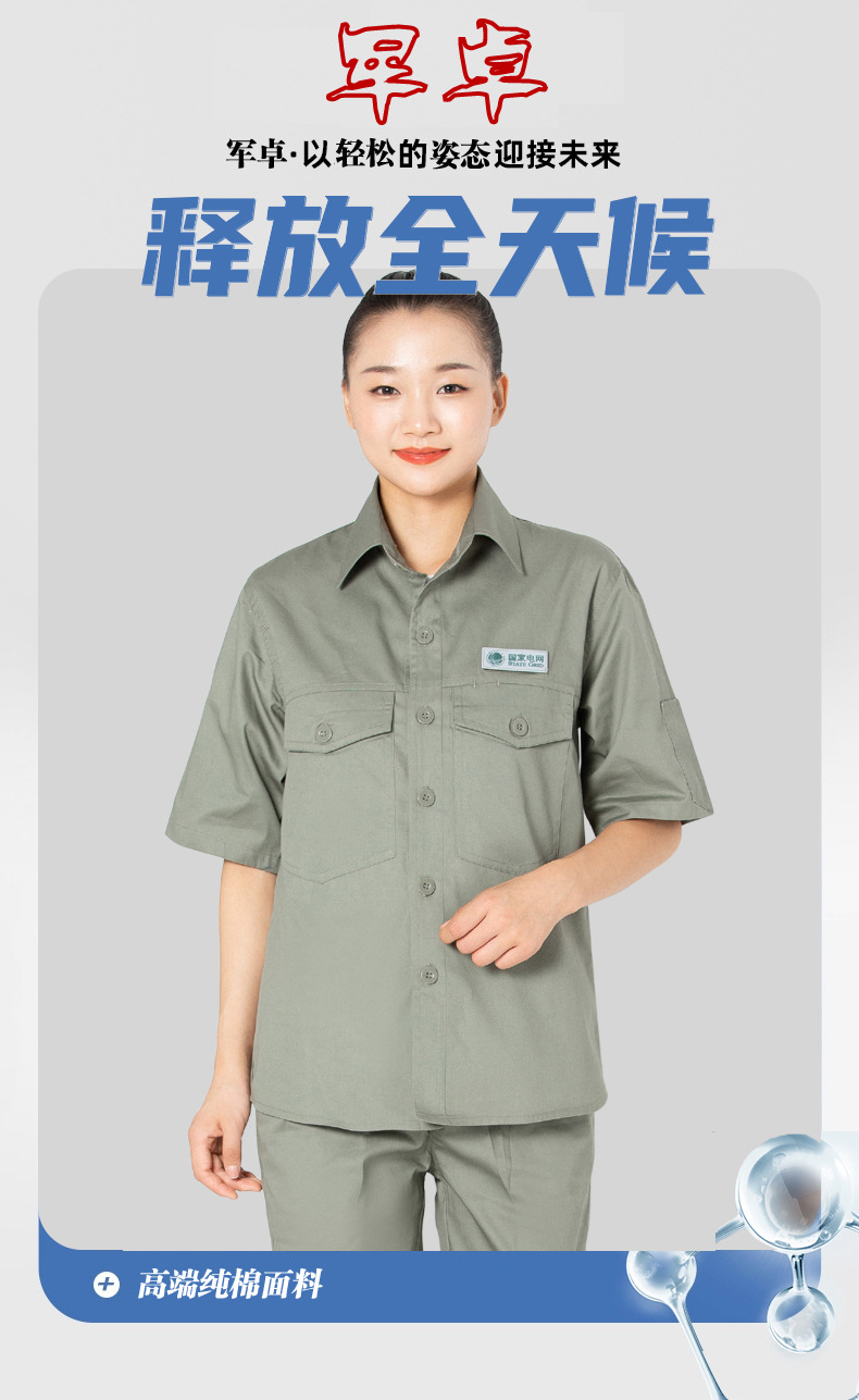 • 순면 가을 녹색 반팔 State Grid 로고 슈트