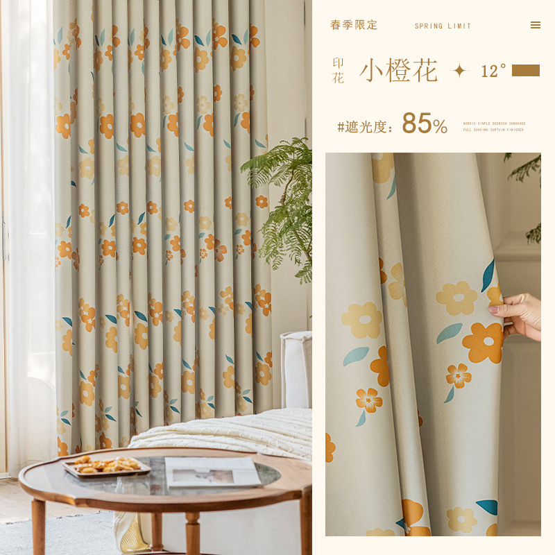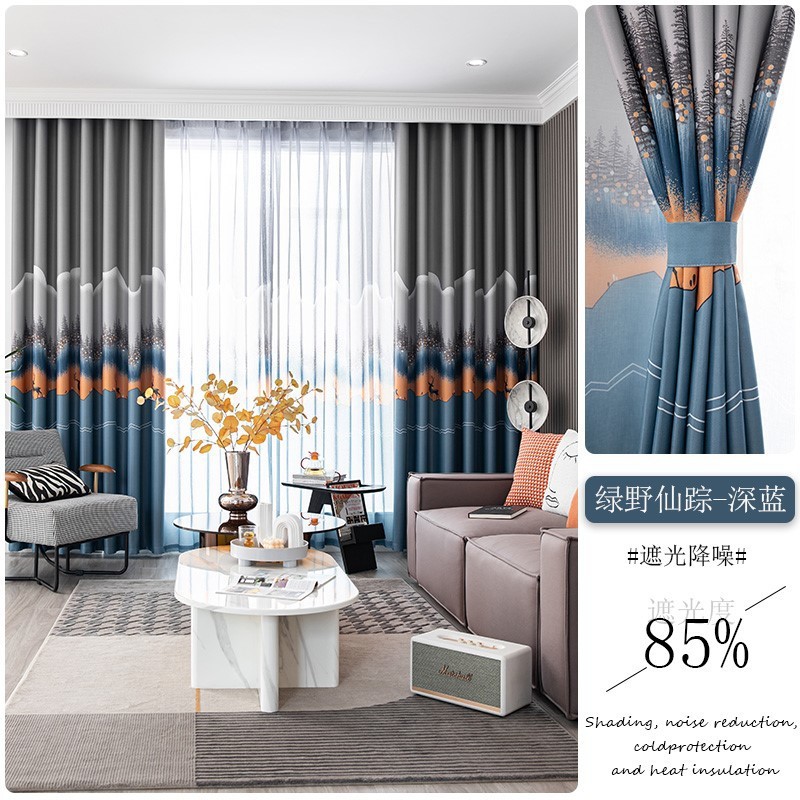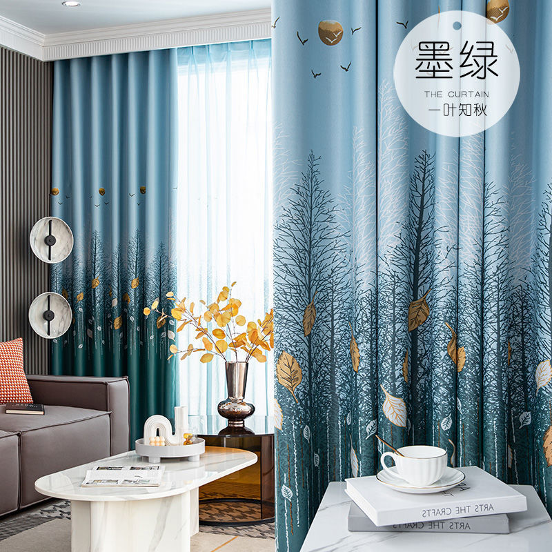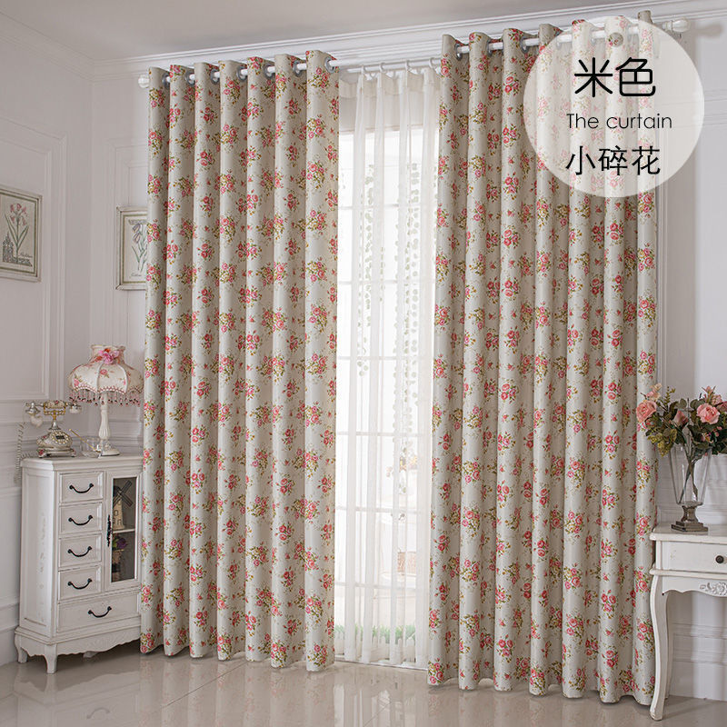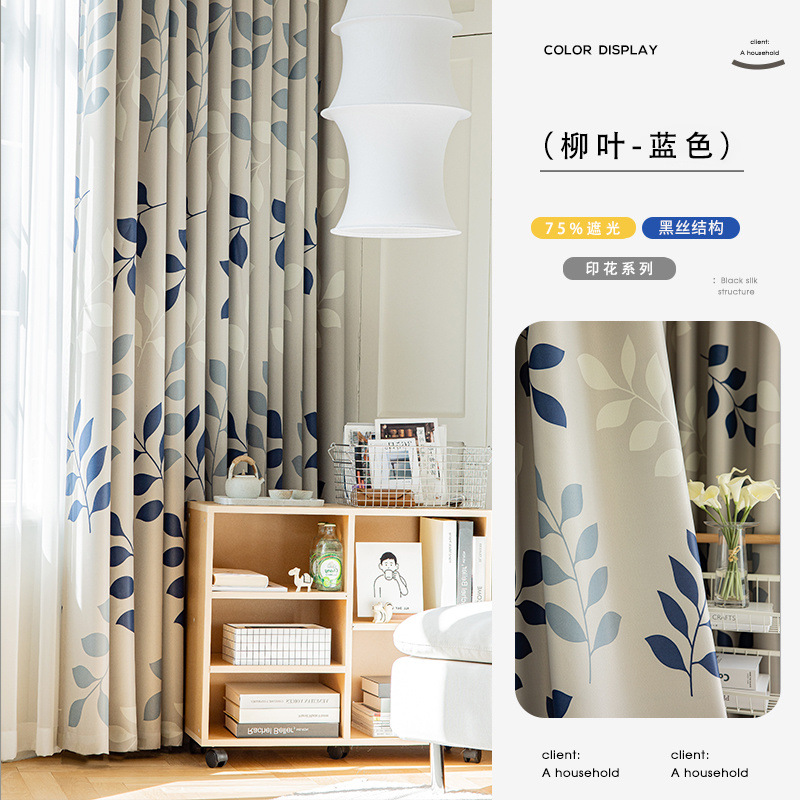커튼 원단 침실 거실 베이 창 차광 반커튼 목가적 커튼 완제품 완전 차광 짧은 커튼 차광 및 방진 암호화스토어 가기
