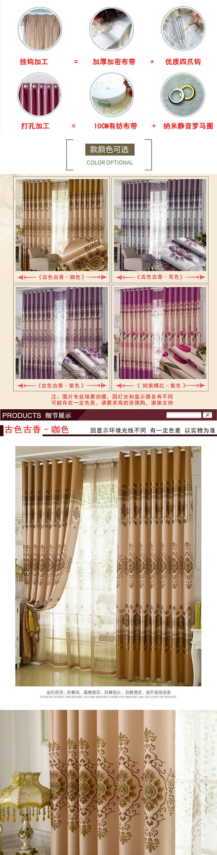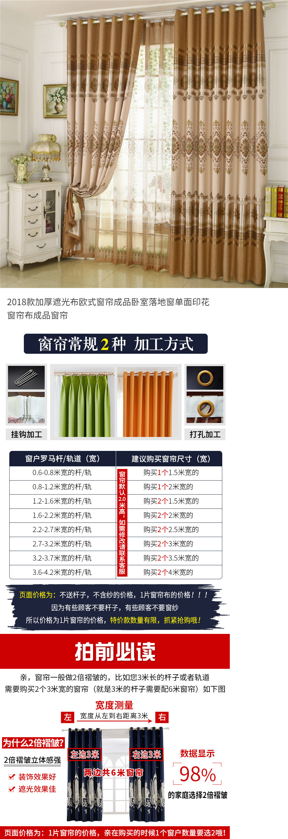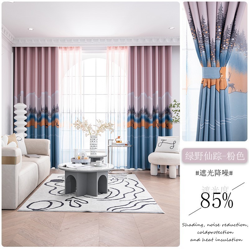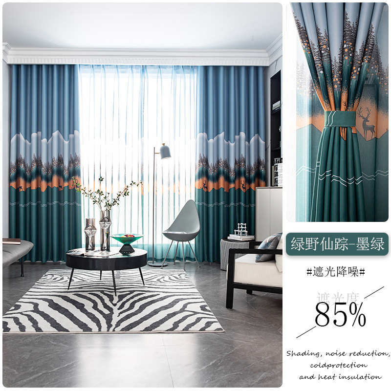 커튼 원단 침실 거실 베이 창 차광 반커튼 목가적 커튼 완제품 완전 차광 짧은 커튼 차광 및 방진 암호화스토어 가기