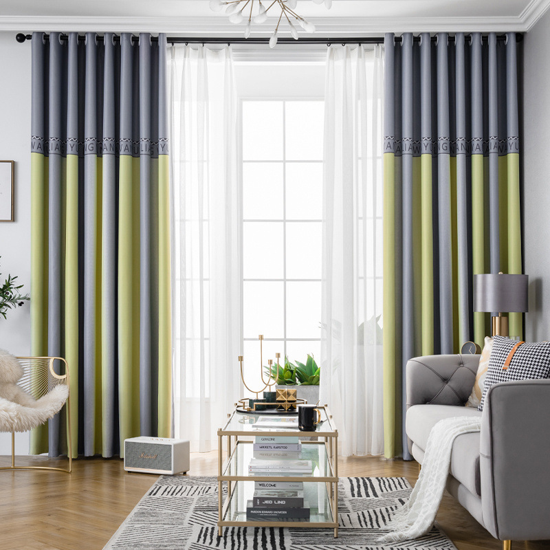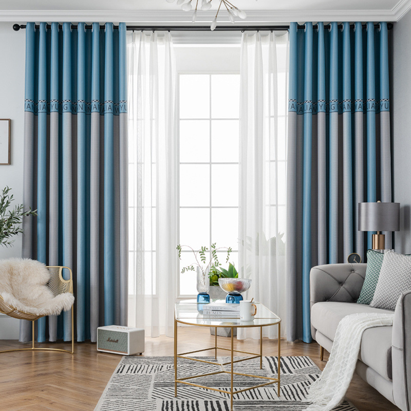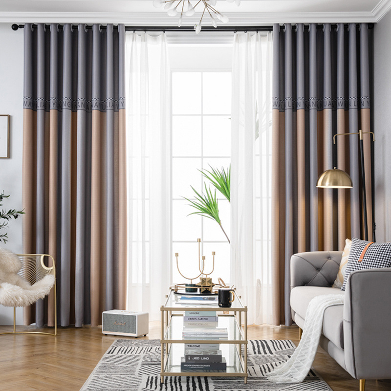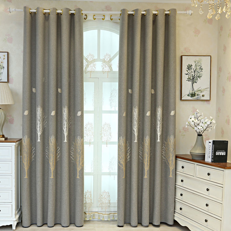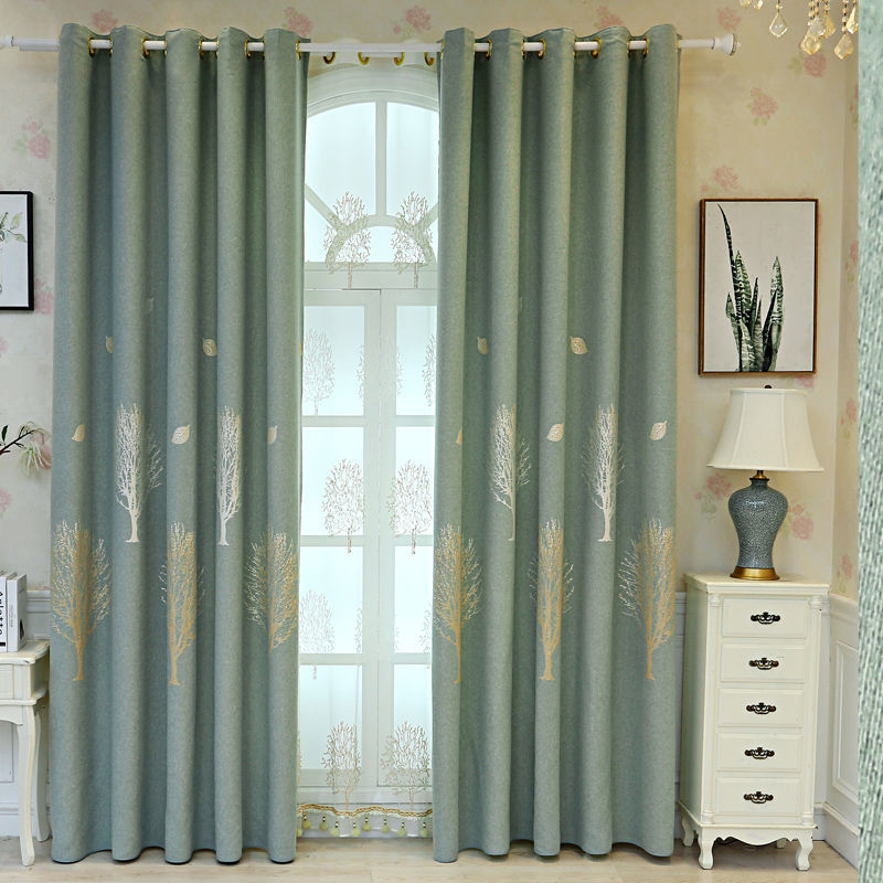 커튼 원단 침실 거실 베이 창 차광 반커튼 목가적 커튼 완제품 완전 차광 짧은 커튼 차광 및 방진 암호화