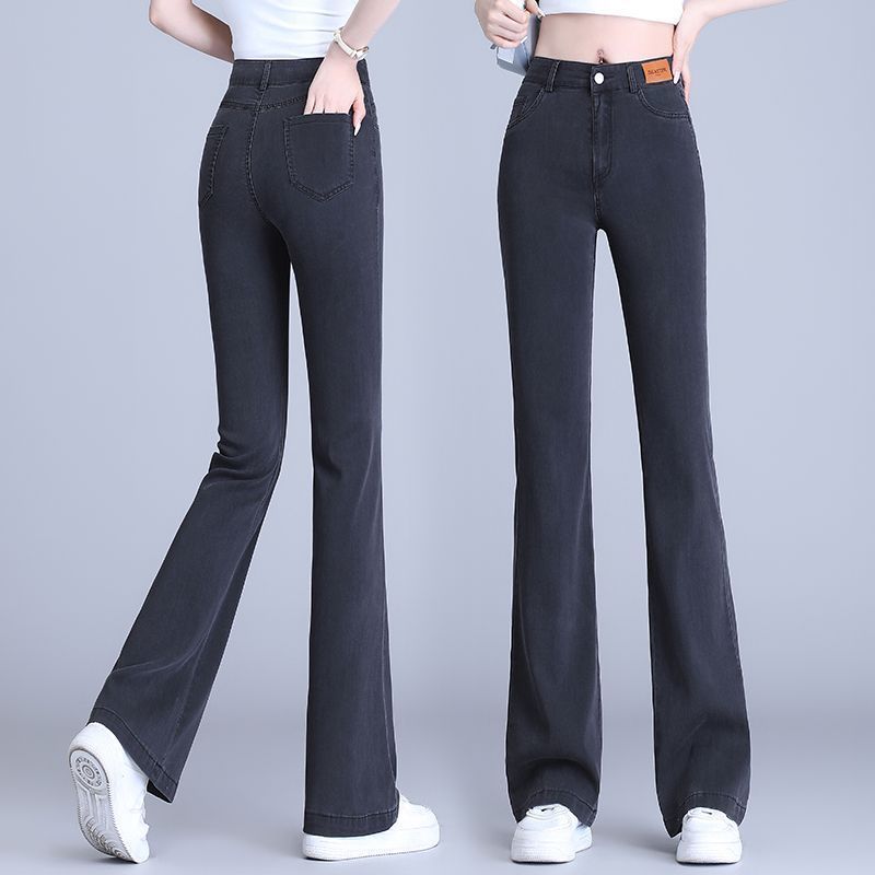 여름 텐셀 플레어 팬츠 청바지 여성 얇은 2025 새로운 패션 높은 허리 슬리밍 마이크로 라 아이스 실크 바지스토어 가기