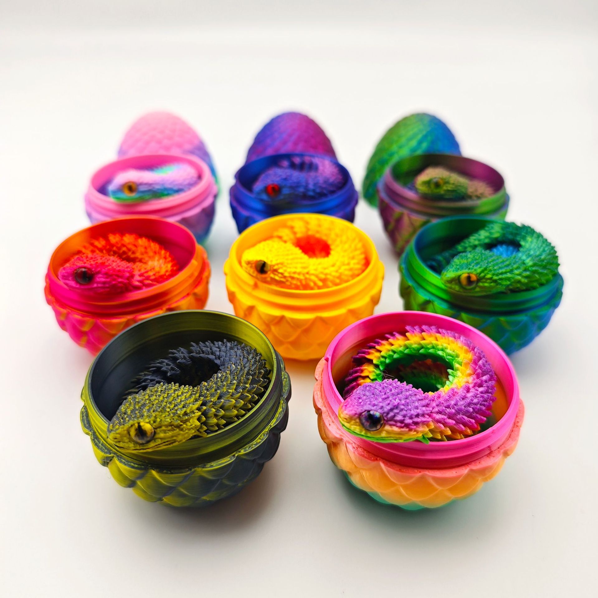 폭발적인 3D 인쇄 장난감 뱀 계란 세트 바이퍼 장식 유연한 손 선물 색상 장식 창조적 인 조수 놀이