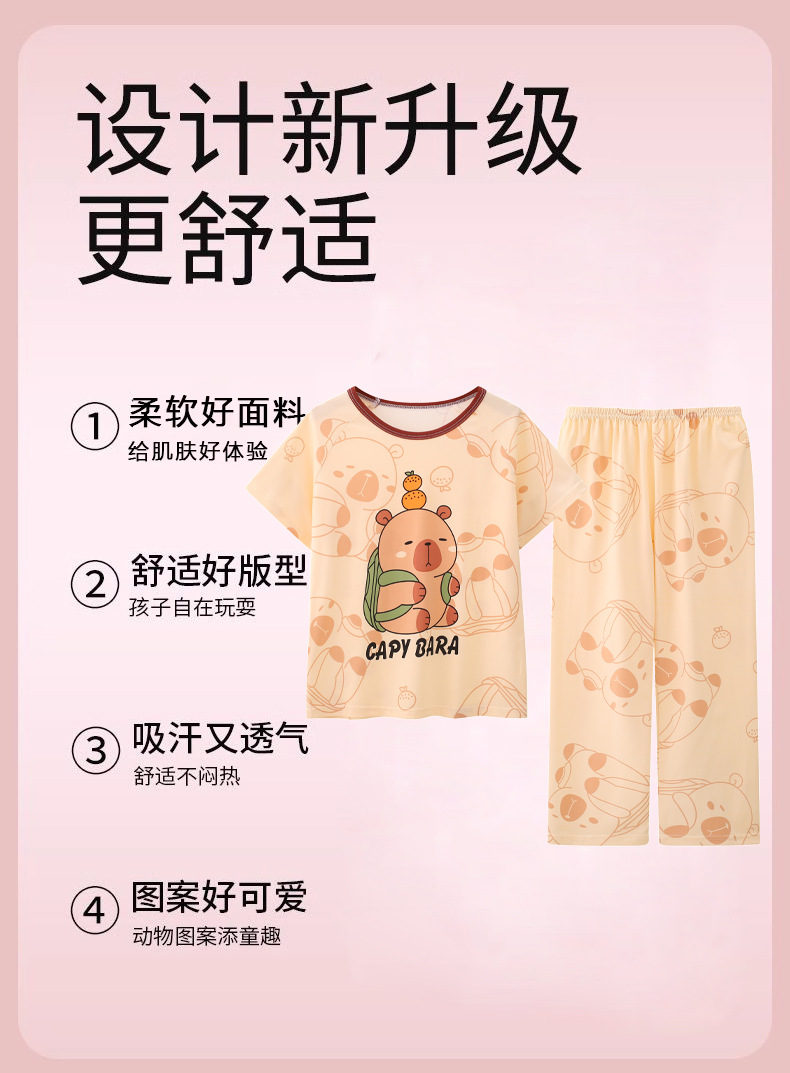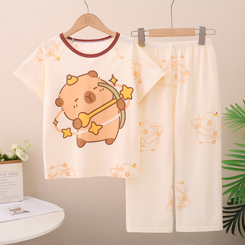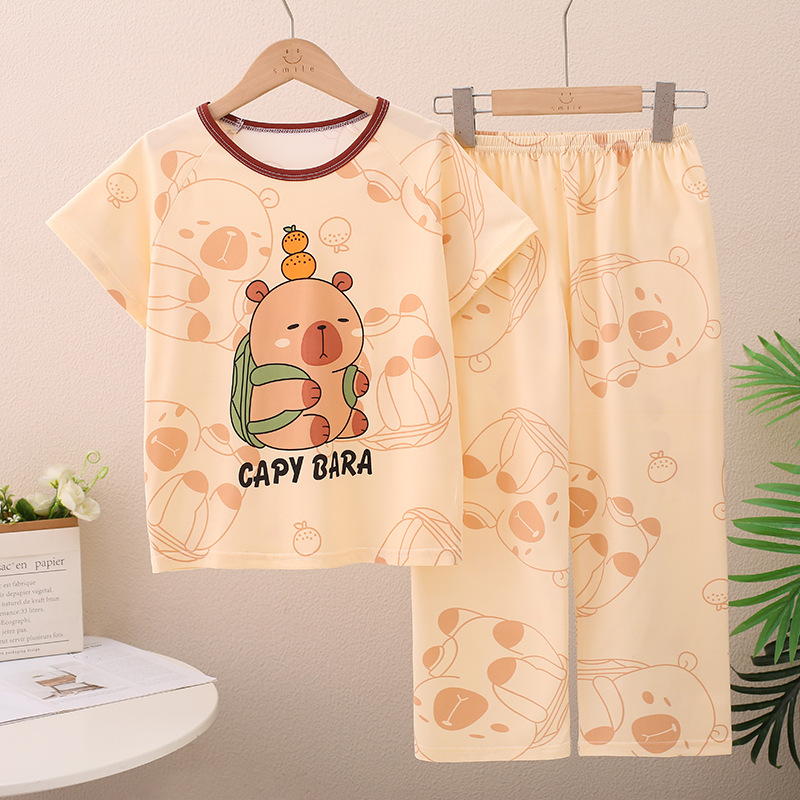 Kapibala 어린이 잠옷 소년 중대형 어린이 긴팔 바지 소녀 만화 작은 Capybara 홈 의류 세트