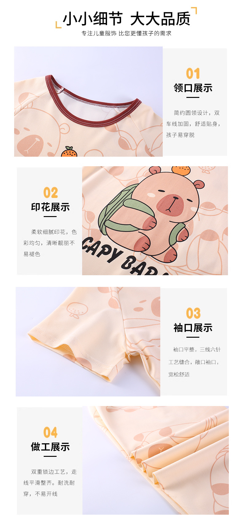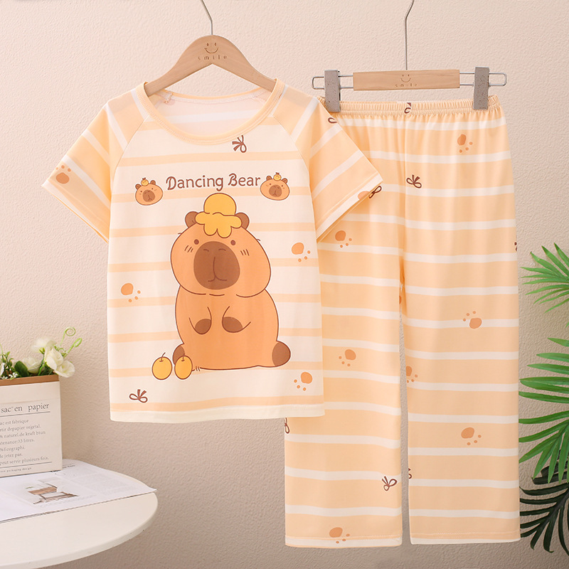 Kapibala 어린이 잠옷 소년 중대형 어린이 긴팔 바지 소녀 만화 작은 Capybara 홈 의류 세트스토어 가기