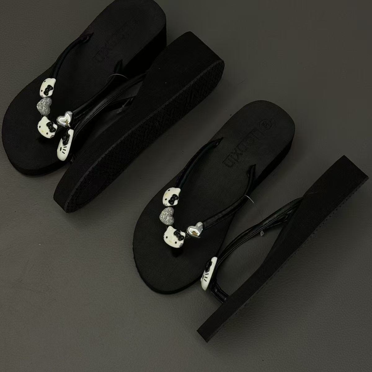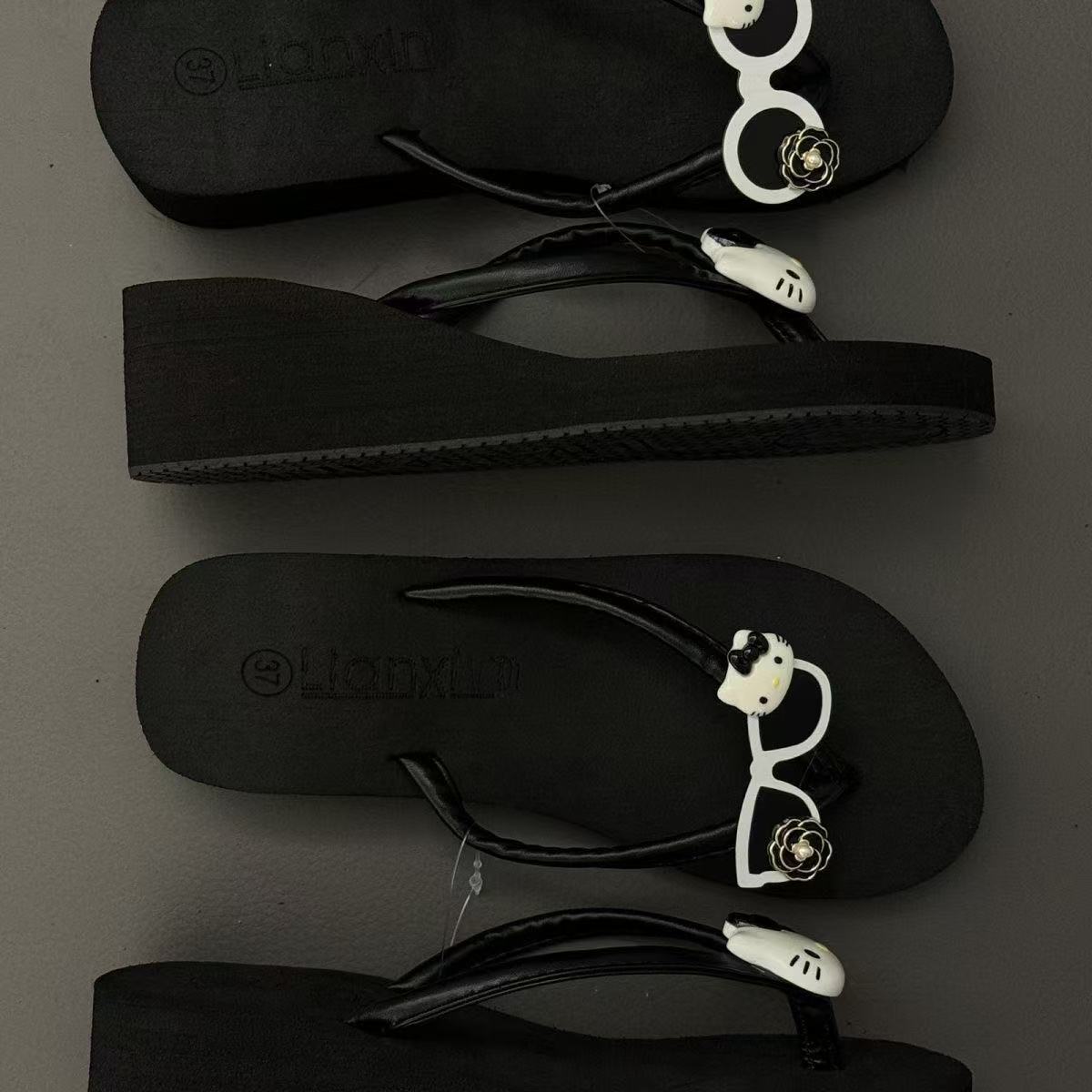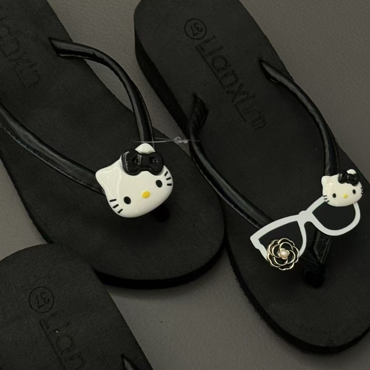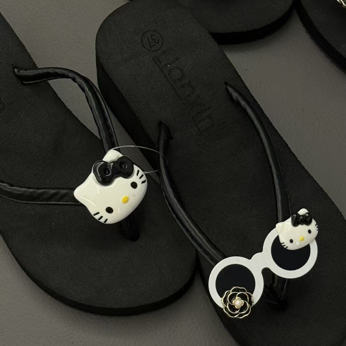 달콤한 쿨 키티 플립 플롭스 여름 해변 샌들 귀여운 배설물 아웃웨어 패션 올 매치 뉴 스타일