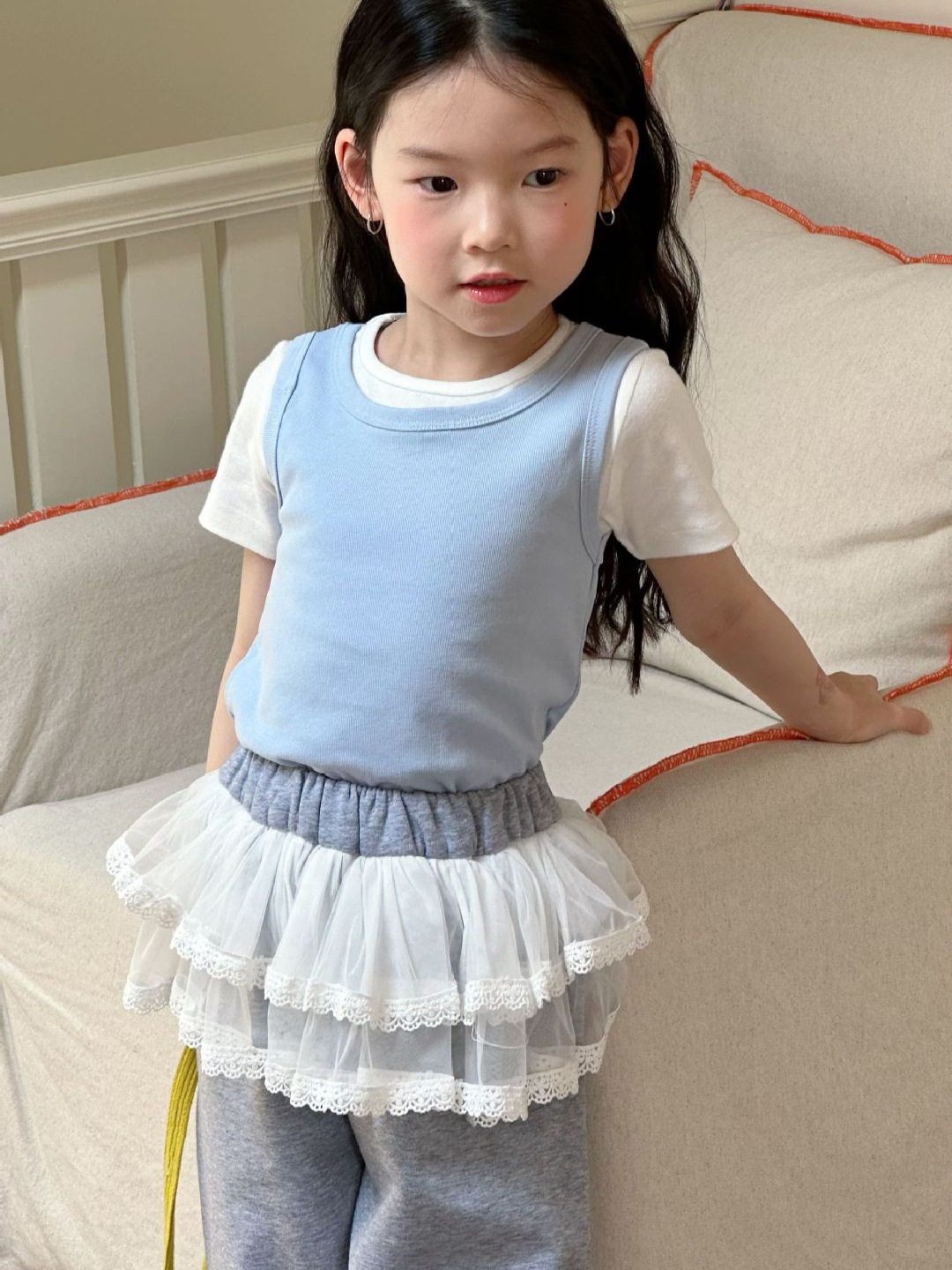 2025 여름 새 아동복 한국 아동복 소녀 패션 조끼 티셔츠 2 세트 리얼 2 티셔츠스토어 가기