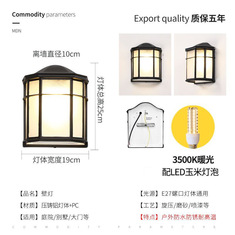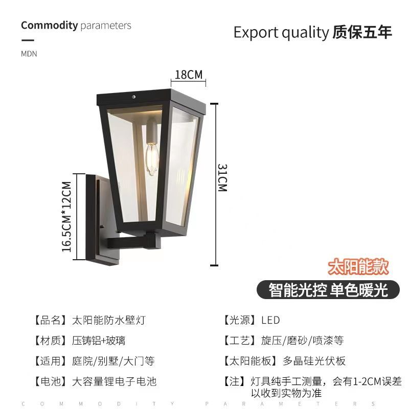태양 벽 램프 야외 방수 안뜰 미국 스타일 간단한 야외 발코니 벽 램프 빌라 입구 외부 벽 램프