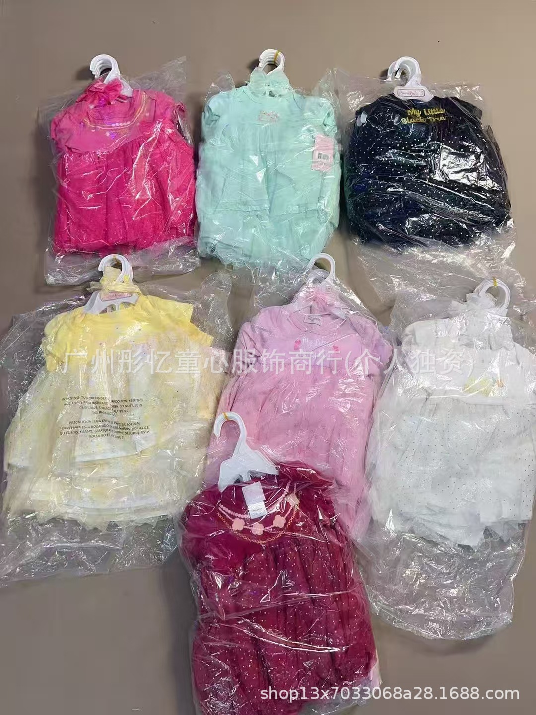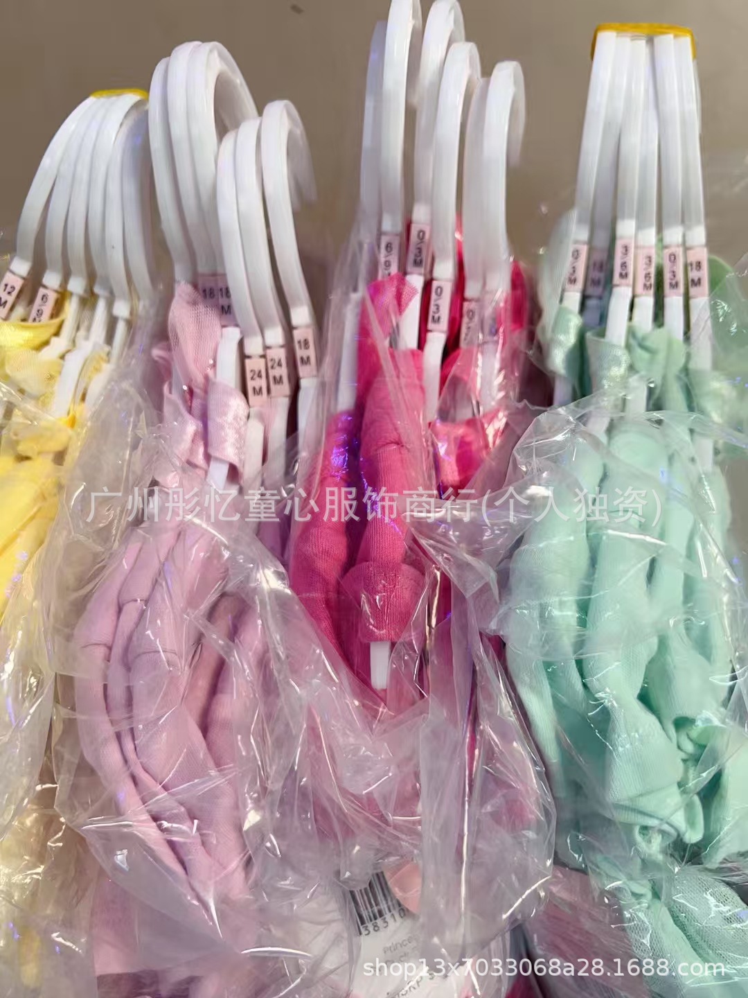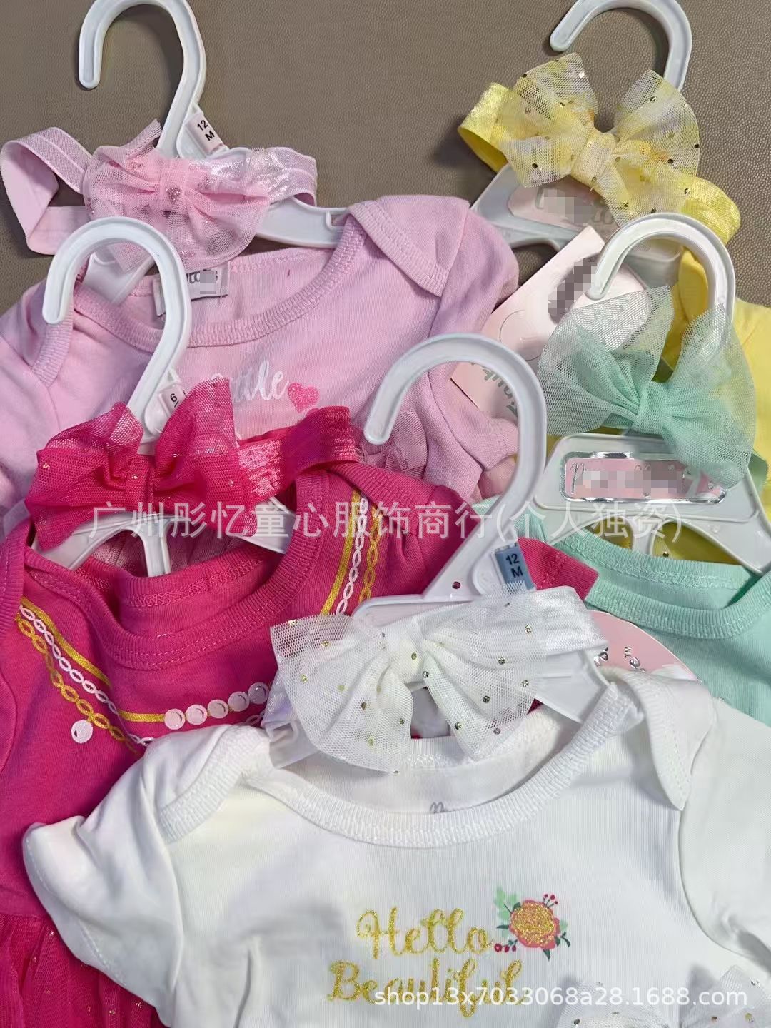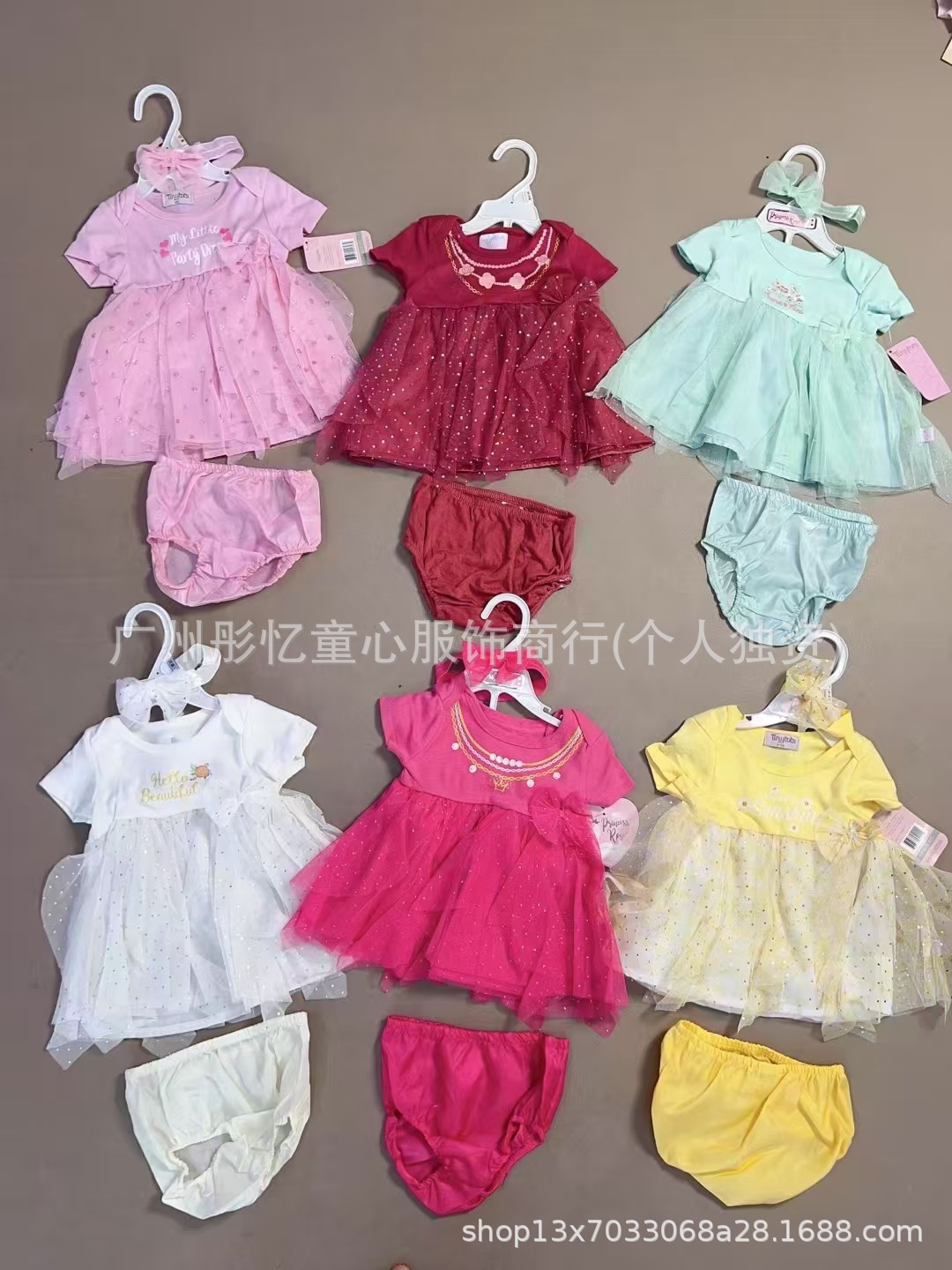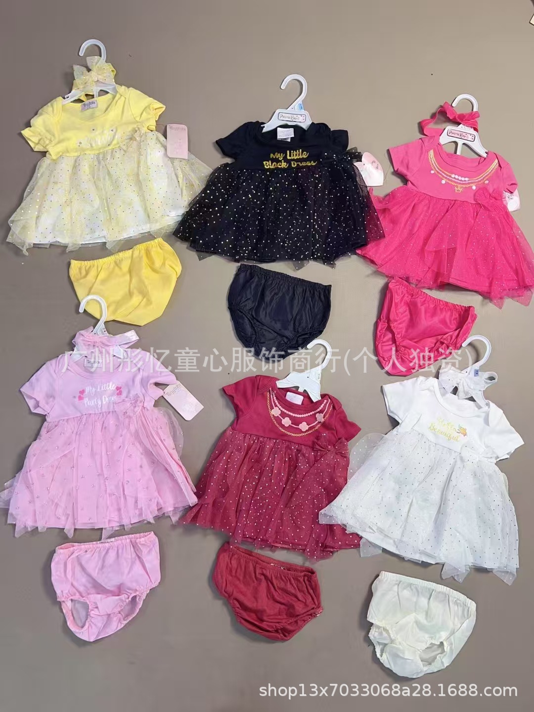 女宝宝裙子三件套,两件套(因为部分没有头饰)都有衣架,尺码3-24M,100套起批total 1190套