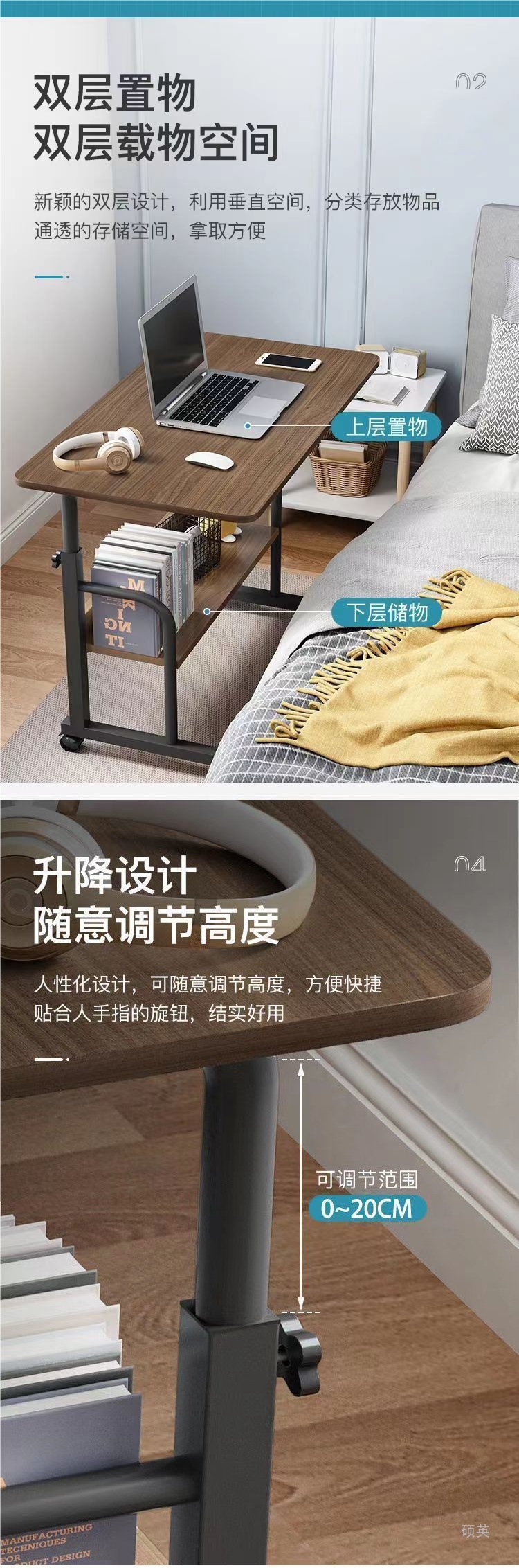 침대 옆 테이블 이동식 간이 테이블 침실 임대 주택 가정용 노트북 테이블 침대 학습 테이블 임대
