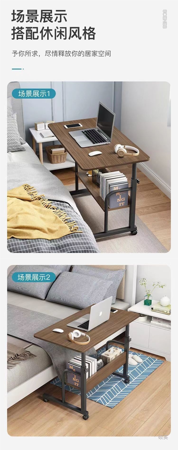 침대 옆 테이블 이동식 간이 테이블 침실 임대 주택 가정용 노트북 테이블 침대 학습 테이블 임대스토어 가기