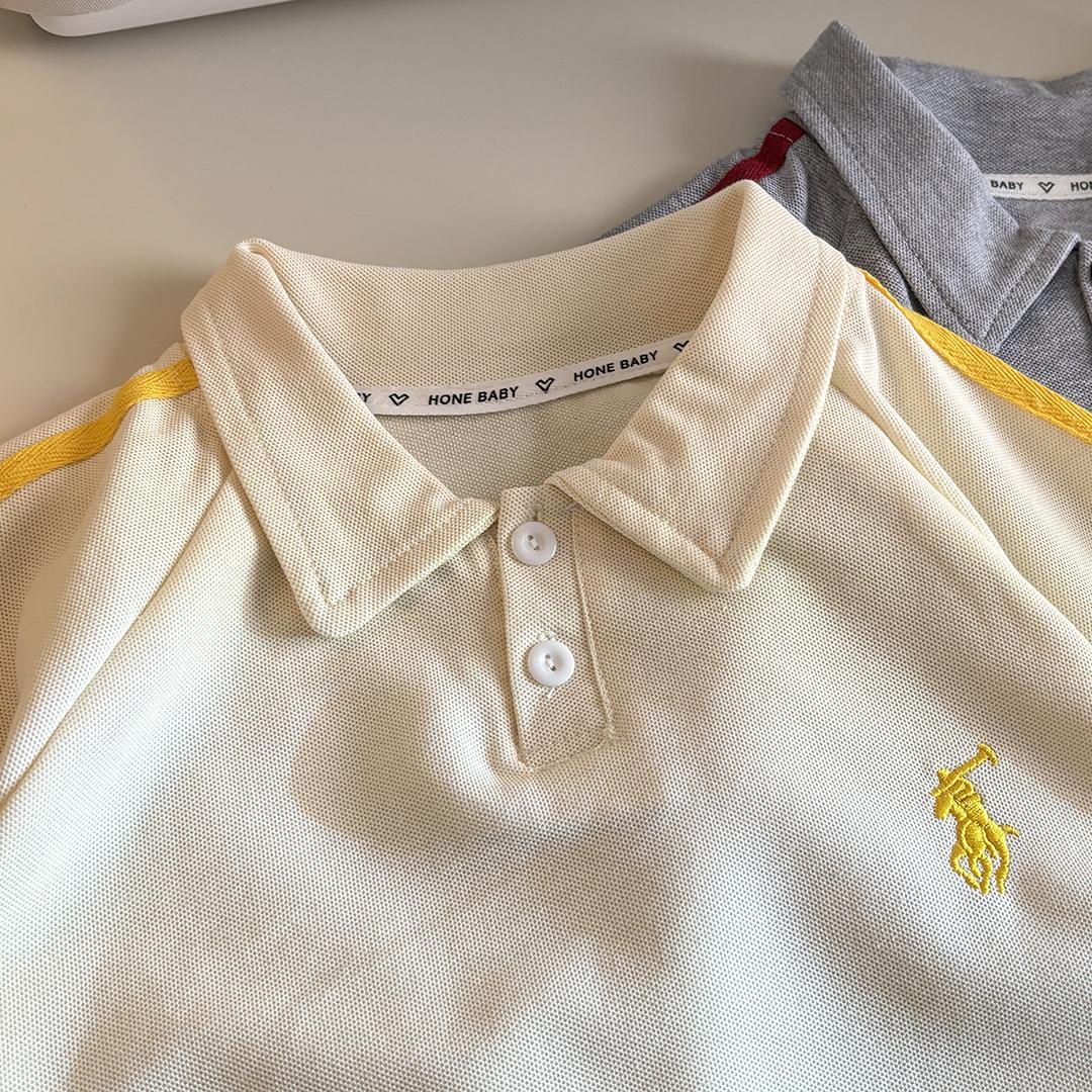[오노풍] 여름 아동용 면 폴로셔츠 세트 한국 스타일 자수 의류 남녀 아동복 반팔 반바지