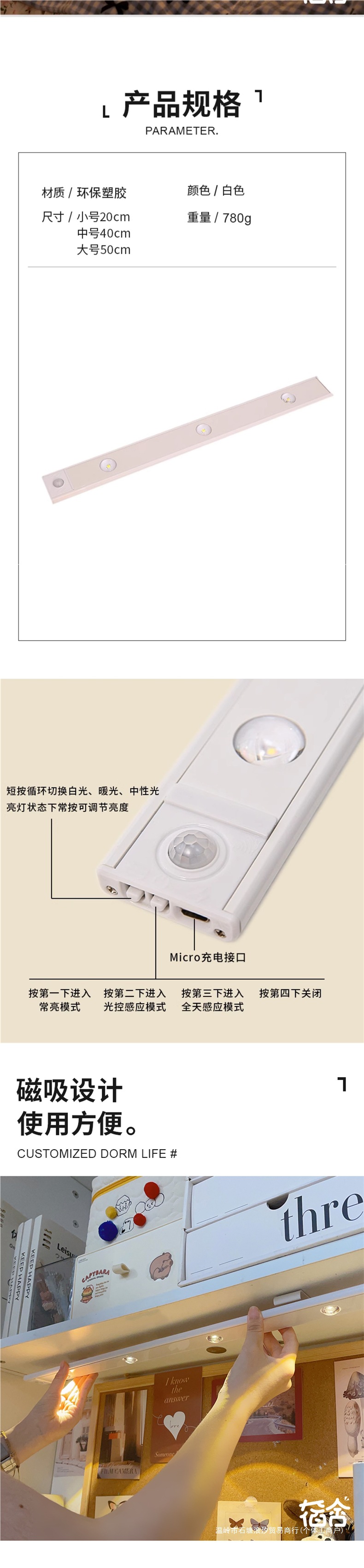• @【2개입】40cm+60cm/3가지 색상 조절 가능/인체 감지등