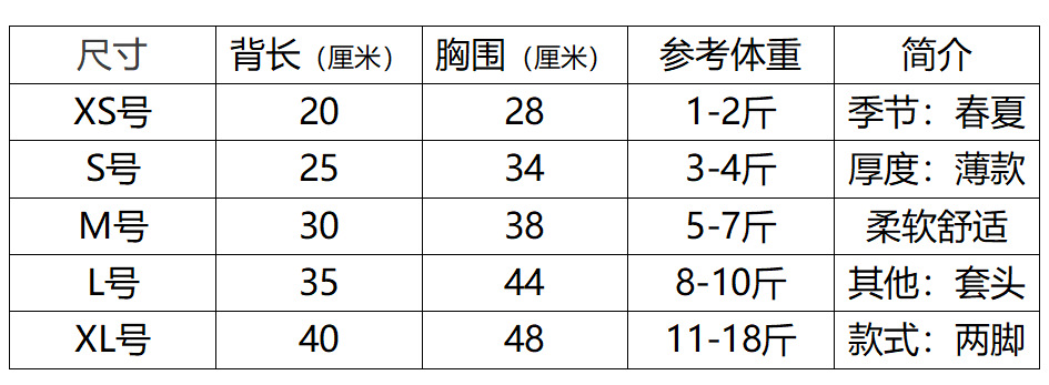 • XS 등길이 20cm (권장 0.5-1.0kg)