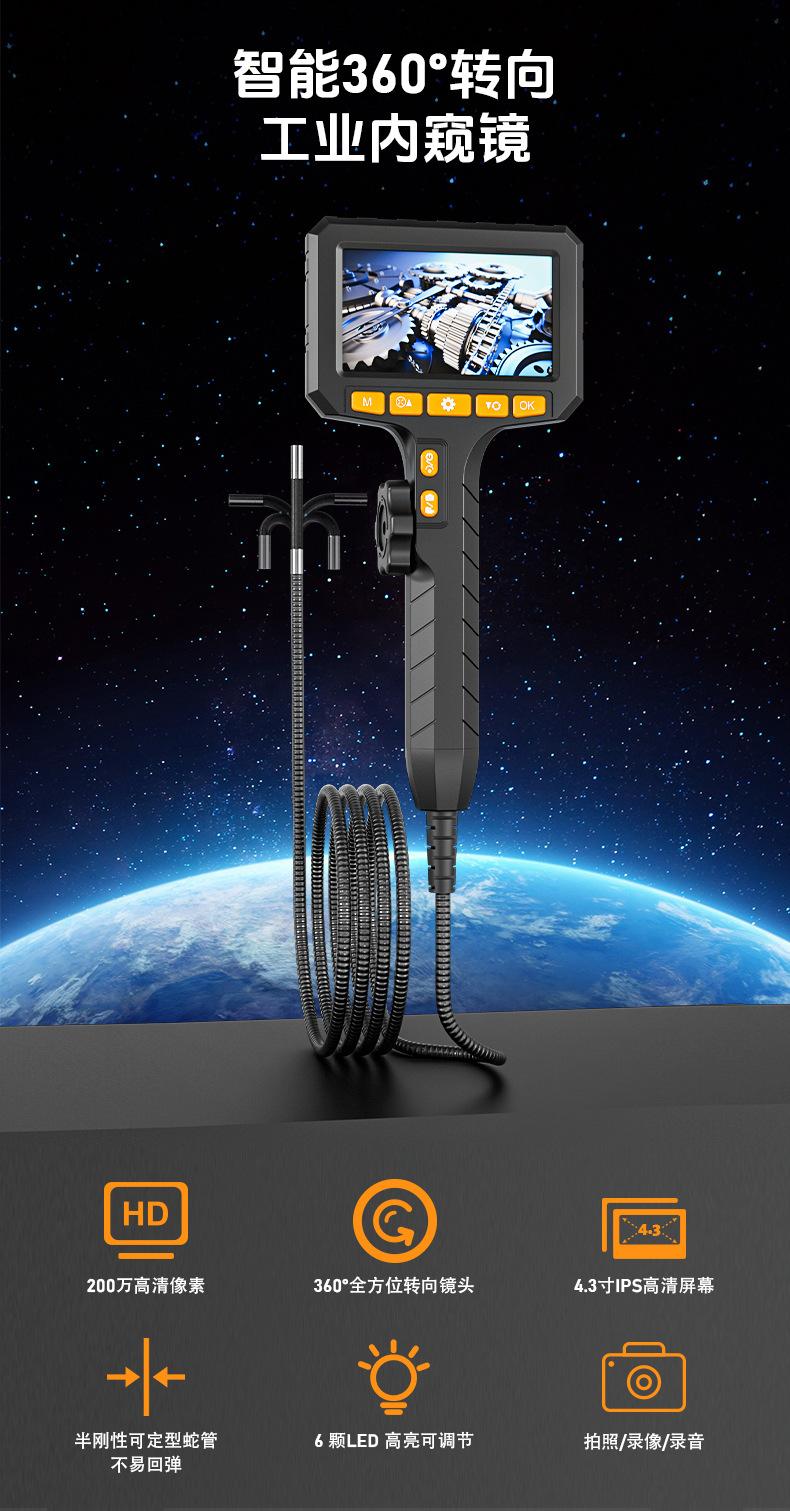 국경을 넘나드는 360 ° 핸드헬드 휴대용 내시경을 사용한 스티어링 내시경 HD 렌즈 파이프 자동차 수리 검사스토어 가기