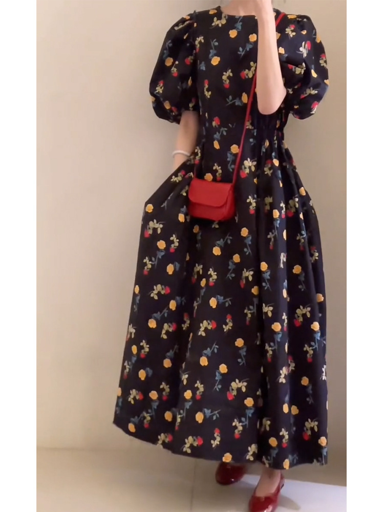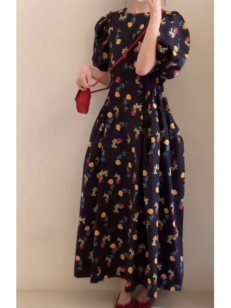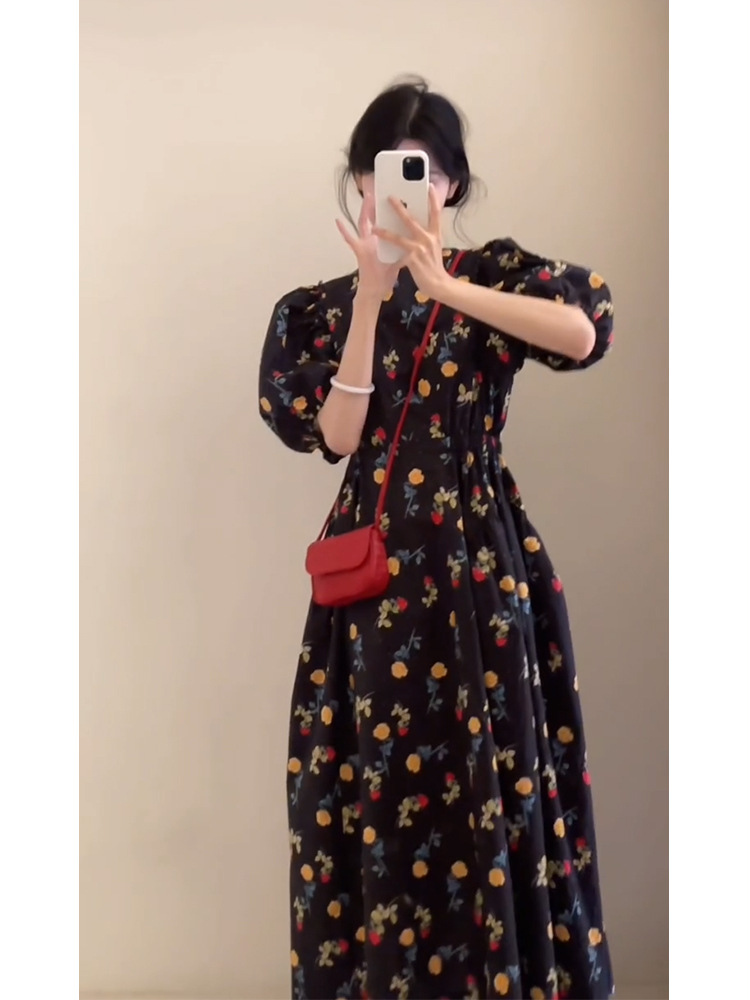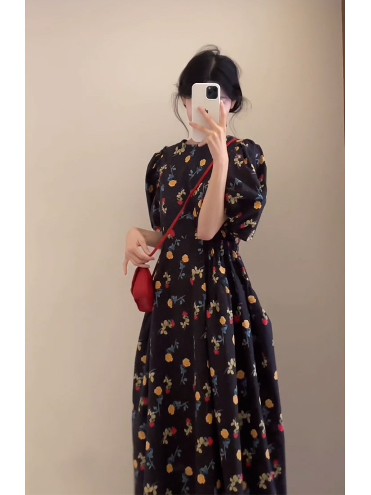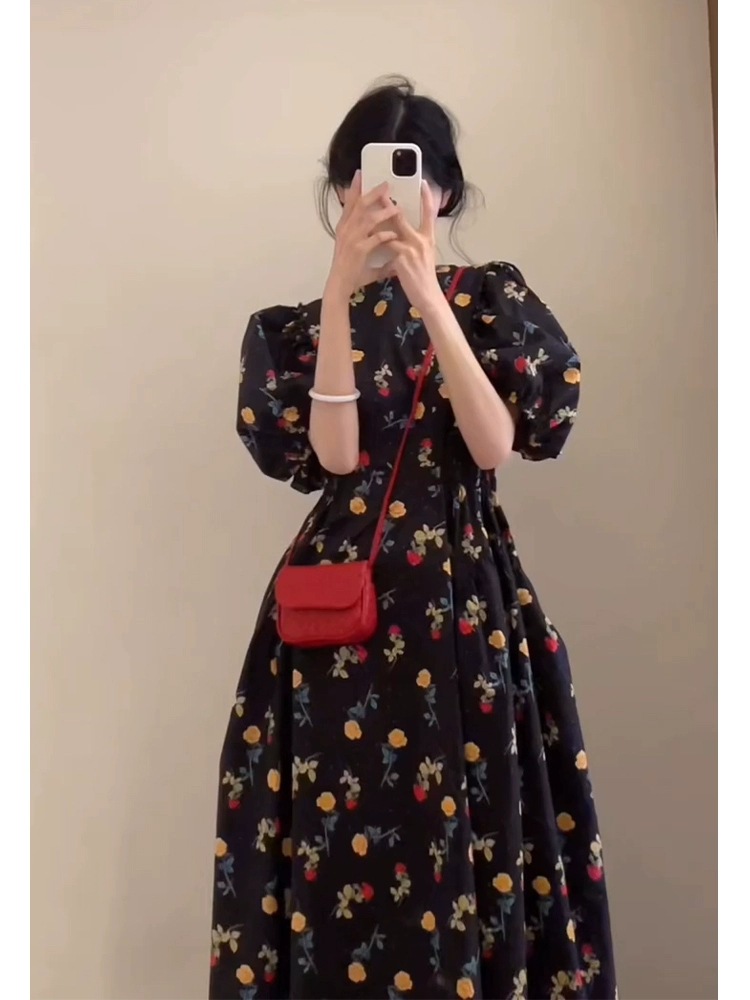 2025 새로운 프랑스 스타일 우아한 해변 휴가 아름다운 독특한 단단한 허리 검은 꽃 원피스 어린이 여름스토어 가기