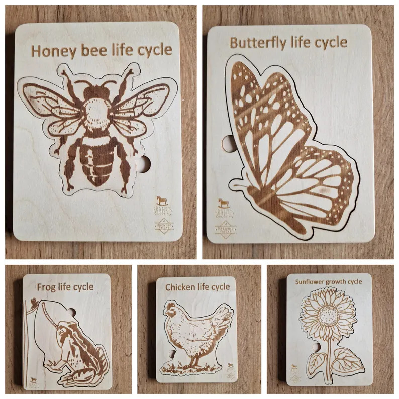 국경 간 신제품 동물 라이프 사이클 퍼즐 장난감 곤충 성장 트레이 나무 공예 장식품스토어 가기