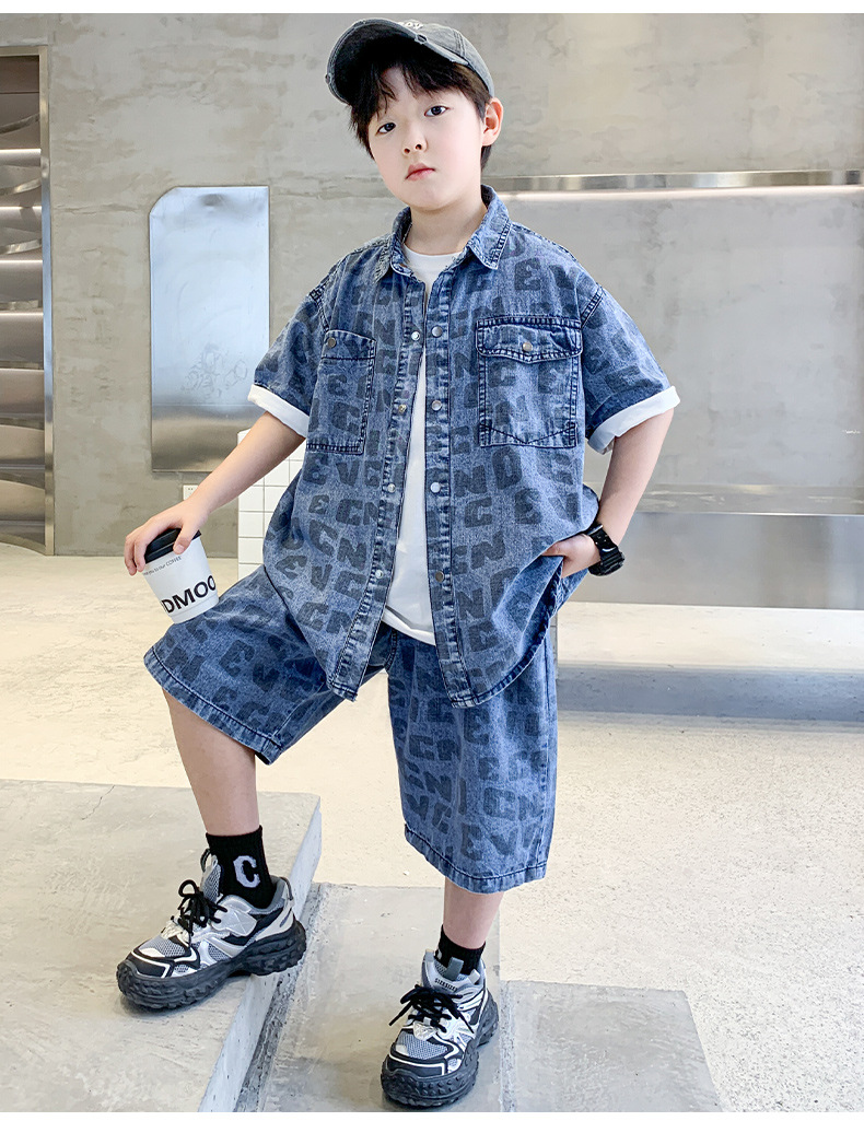 어린이 착용 소년 여름 착용 데님 세트 2025 새로운 여름 얇은 반팔 여름 스포츠 키즈 멋진 유행스토어 가기