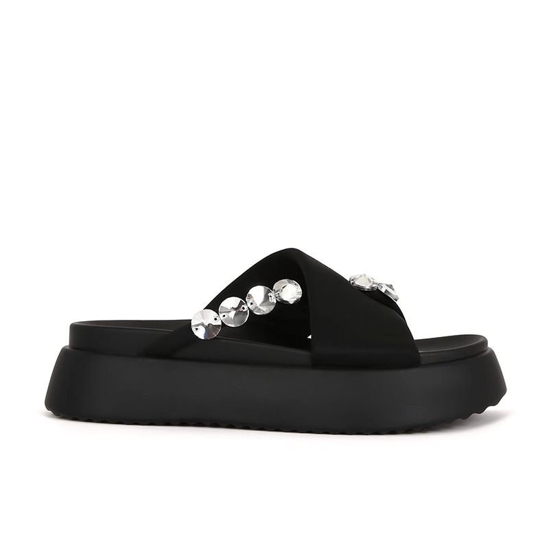 여성 여름 아우터 패션 샌들 2025 신상 라인스톤 고급 두꺼운 샌들 클립온 미끄럼 방지 비치 슈즈
