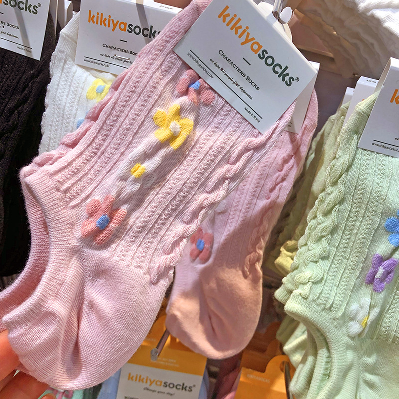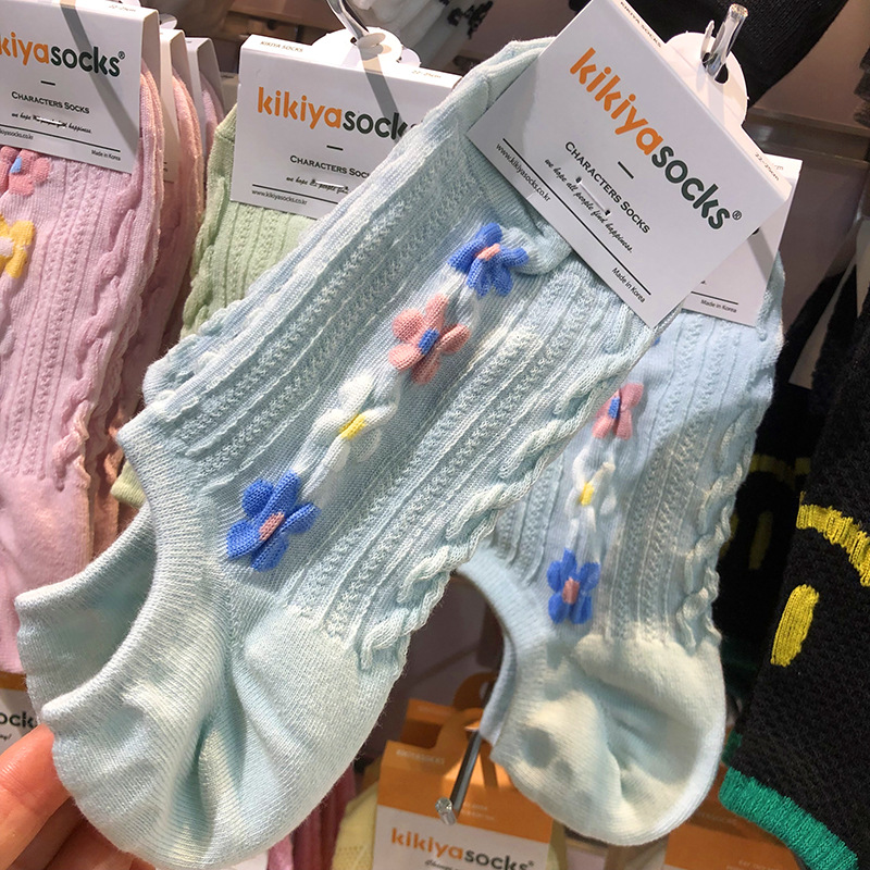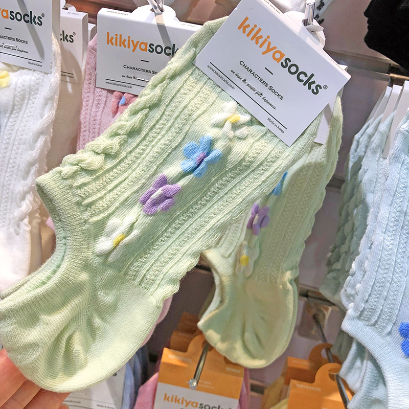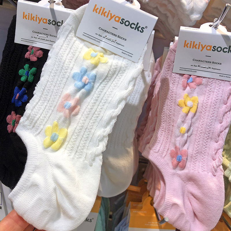 [재고] 한국 키키야 새 보트 양말 입체 실 한국식 작은 꽃 소녀 양말 안티 분리 보이지 않는 양말스토어 가기