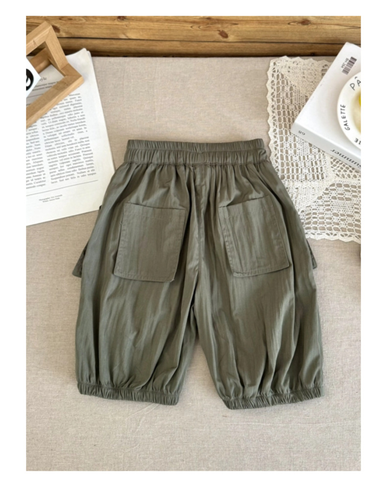 남학생 '5 점 바지 2025 여름 새 어린이 느슨한 와이드 레그 바지 서양식 어린이 캐주얼 트렌디 중형 바지스토어 가기