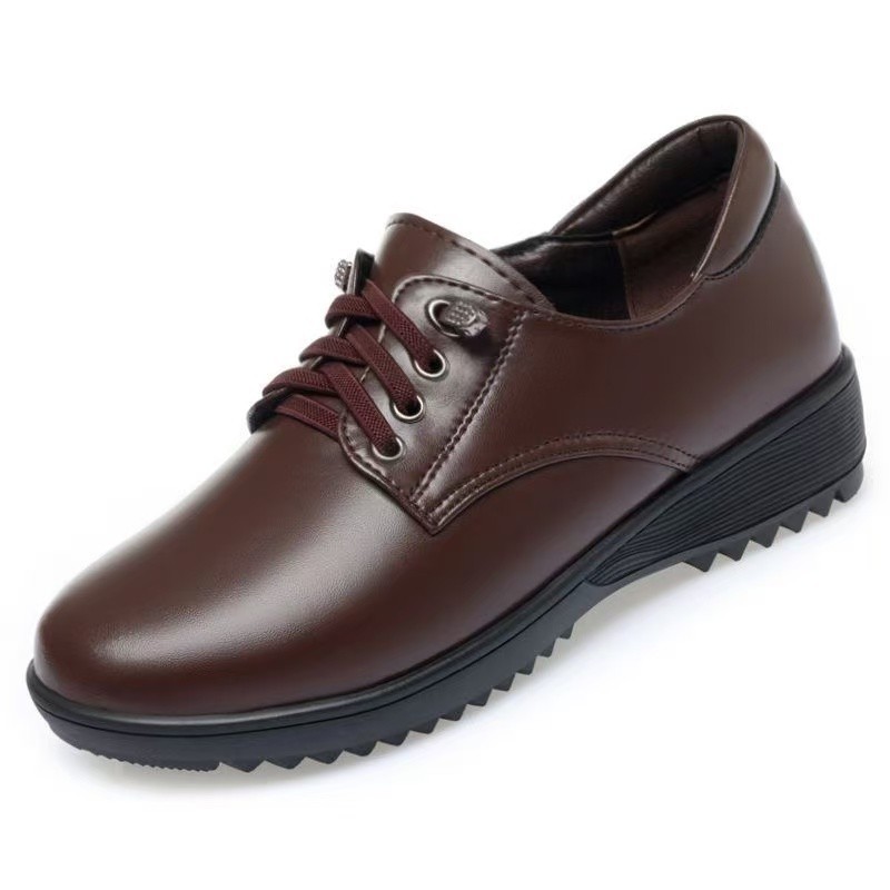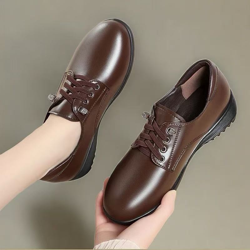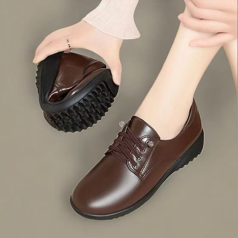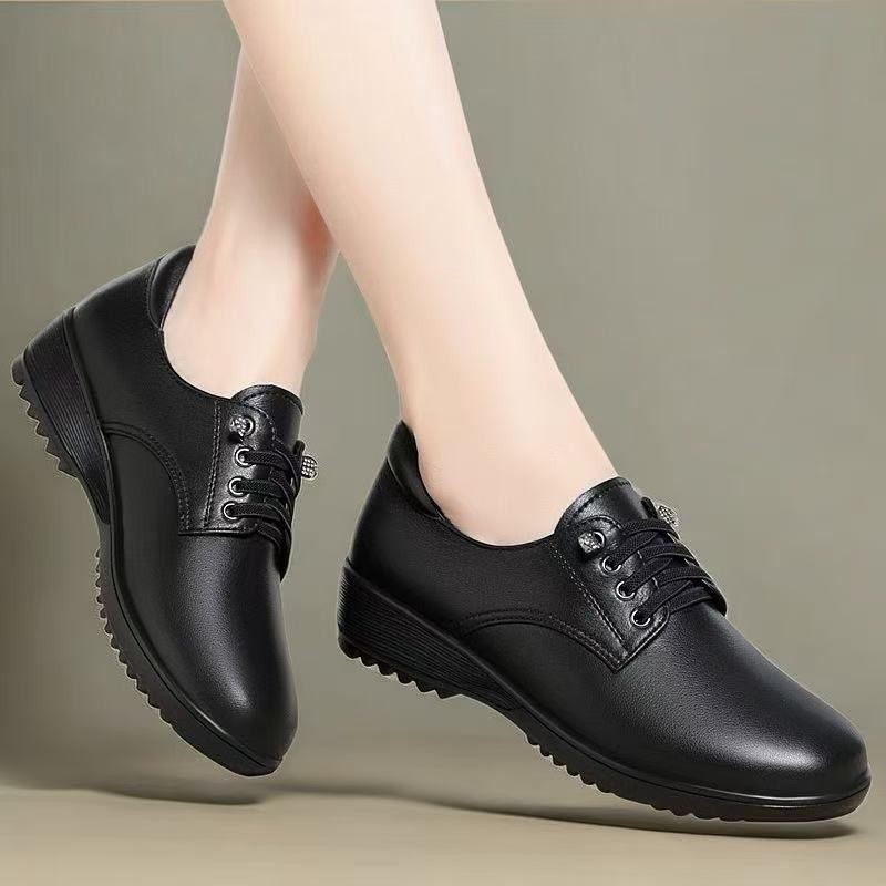 대외 무역 도매 웨지 힐 슬립 온 작은 가죽 신발 여성용 낮은 굽 부드러운 밑창 통근 신발 2025 봄 새 엄마 신발