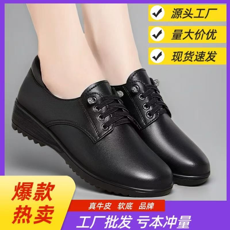 대외 무역 도매 웨지 힐 슬립 온 작은 가죽 신발 여성용 낮은 굽 부드러운 밑창 통근 신발 2025 봄 새 엄마 신발스토어 가기