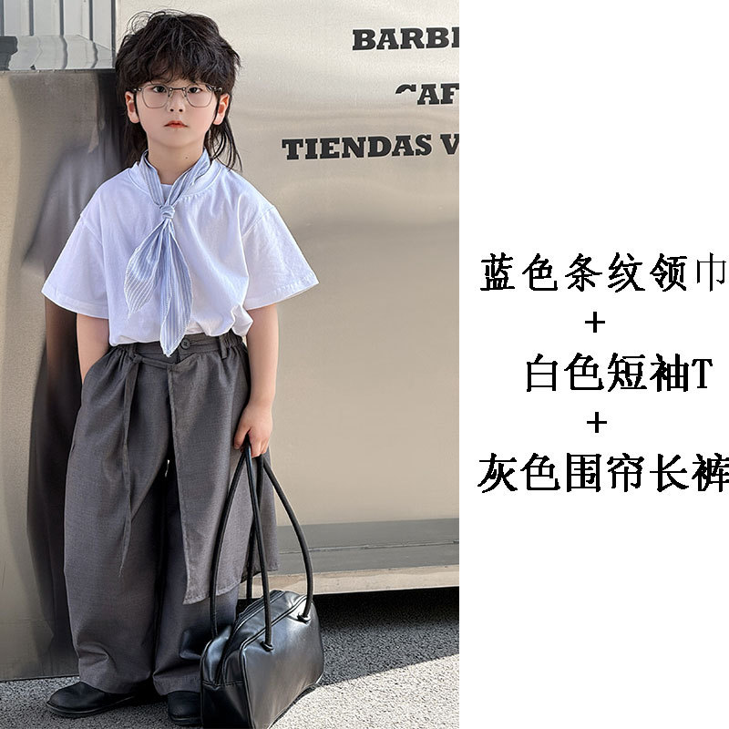 소년 세트 2025 봄과 여름 새로운 아동면 T 스카프 패션 트렌드 한국 바지 아동복 헤어 세대