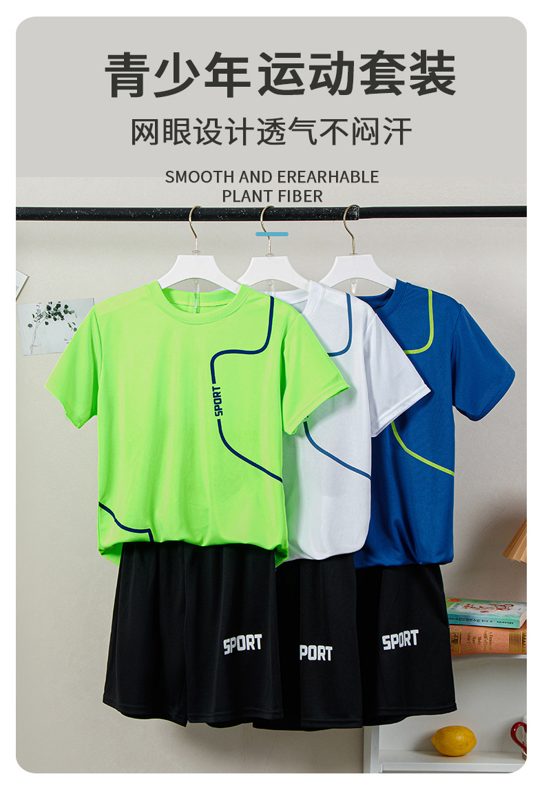 십대 여름 메쉬 통기성 훈련 세트 세트 중 및 빅 키즈 느슨한 반팔 반바지 캐주얼 스포츠 투피스 세트스토어 가기