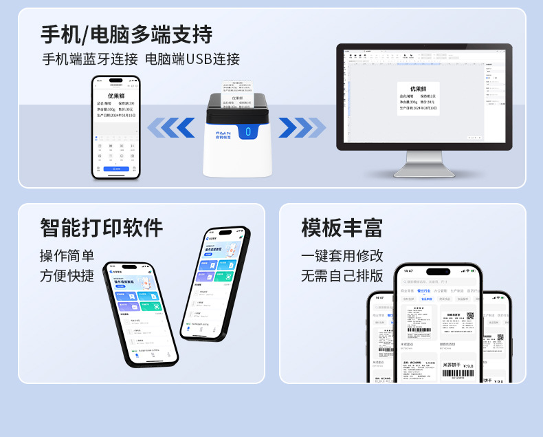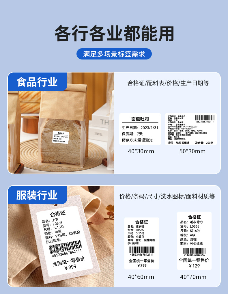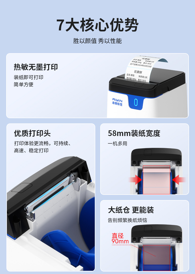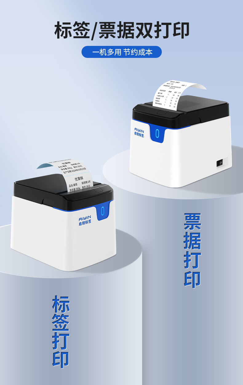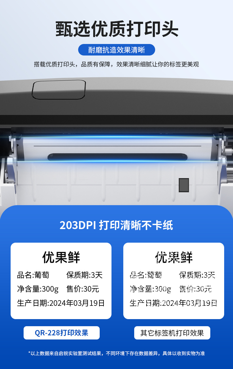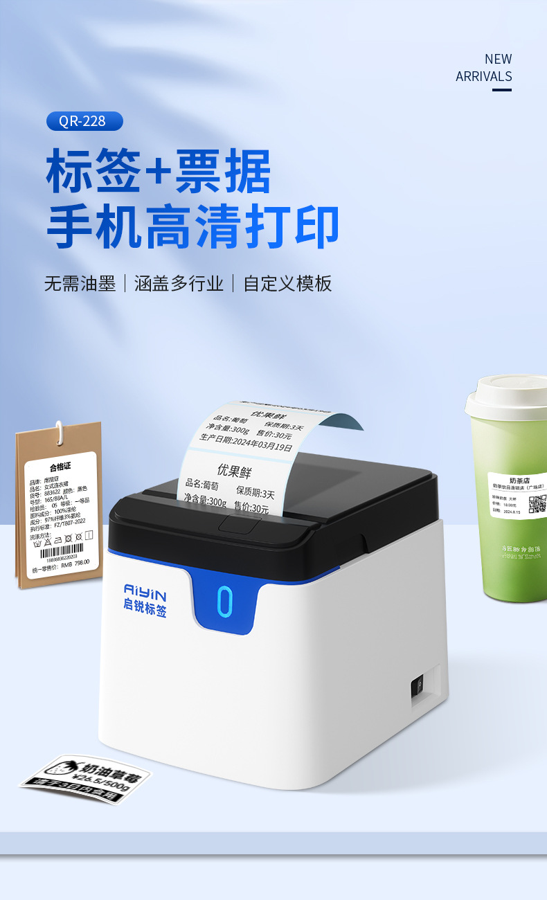 Qirui QR228 라벨 기계 상업용 소형 자체 접착 식품 태그 바코드 열전 사 프린터스토어 가기