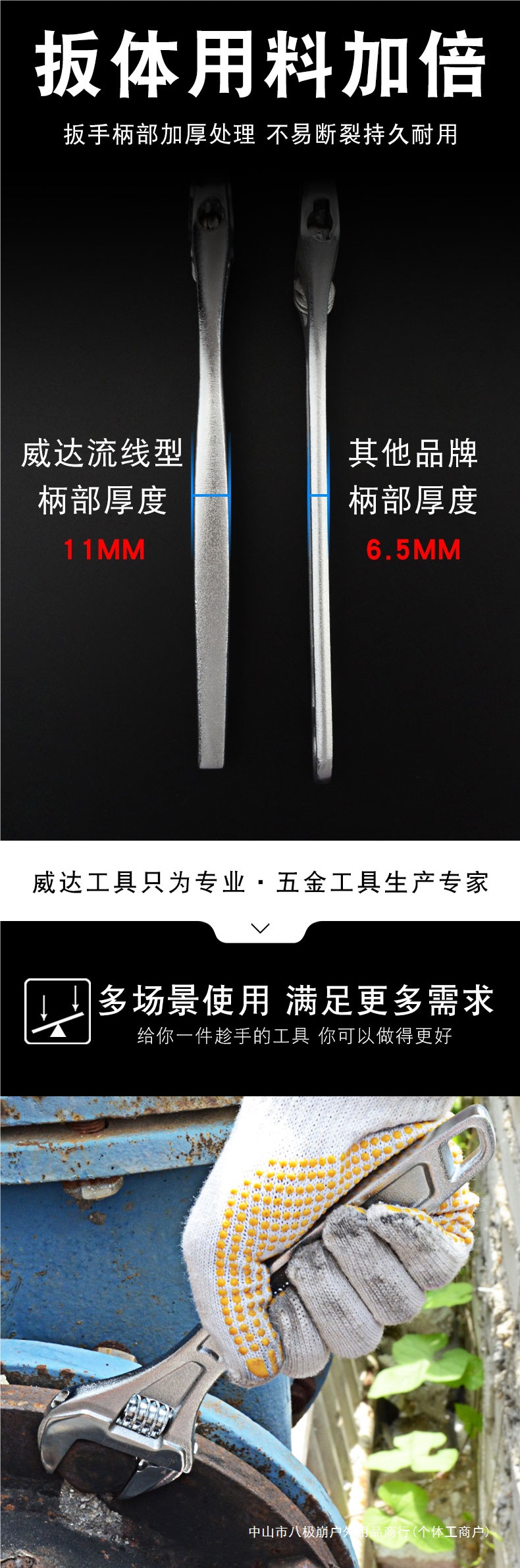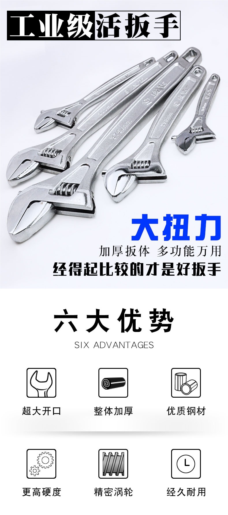 Weida 조절식 렌치 4/12인치 범용 조절식 렌치 다기능 대형 개방형 수도꼭지 소형 조절식 렌치 8극스토어 가기