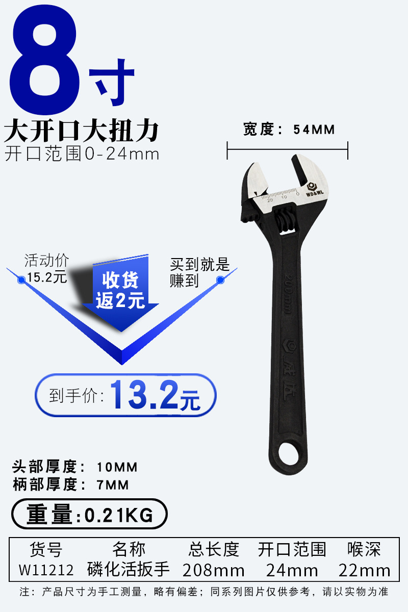 • 조정 가능한 렌치 8인치 200mm 개구부 24mm(W11103)