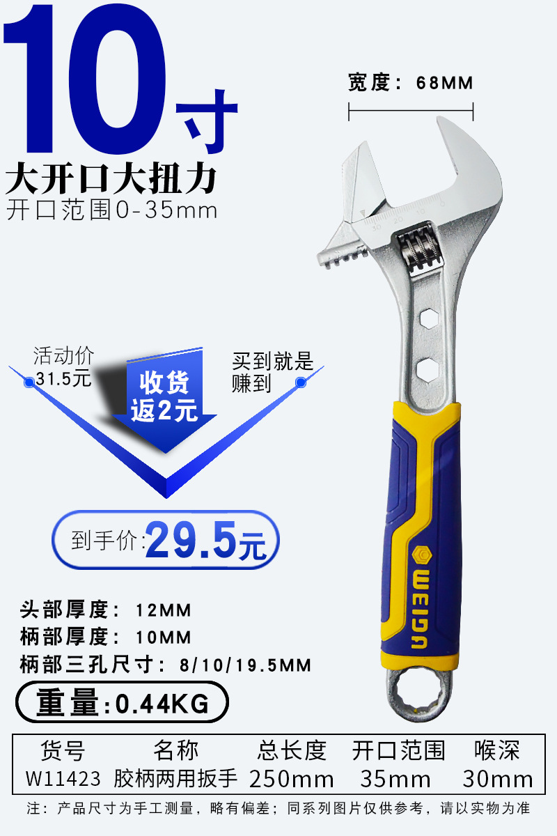 • 고무 손잡이 대형 개방형 조절 렌치 10인치 250mm 개방량 35mm(W11368)