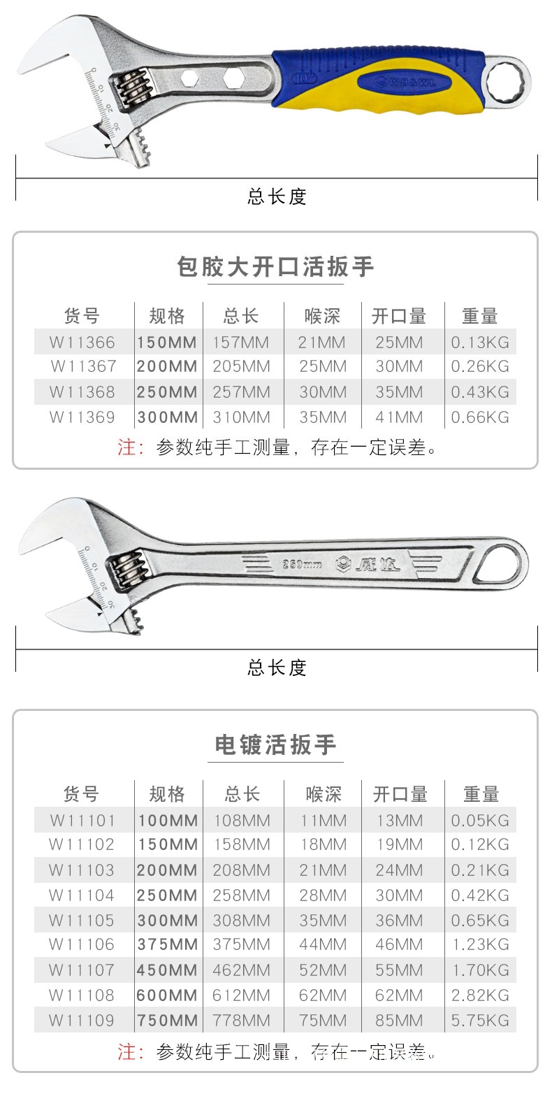 • 고무 손잡이 대형 개방형 조절 렌치 6인치 150mm 개방량 25mm(W11366)