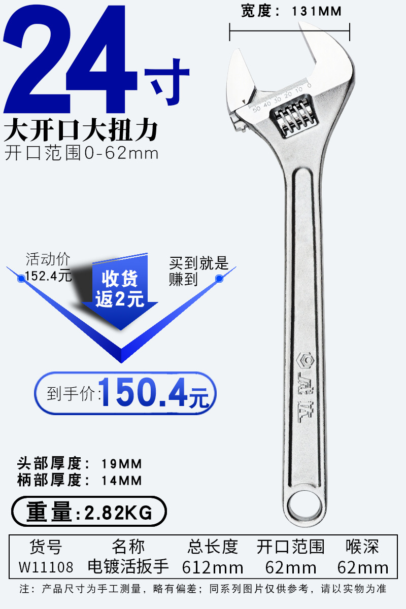 • 조정 가능한 렌치 24인치 600mm 개구부 62mm(W11108)