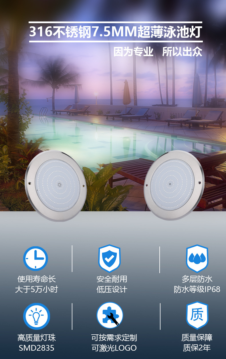 초박형 수영장 조명 LED 다채로운 수영장 벽 조명 야외 방수 벽걸이 형 수영장 수중 조명 IP68 방수스토어 가기