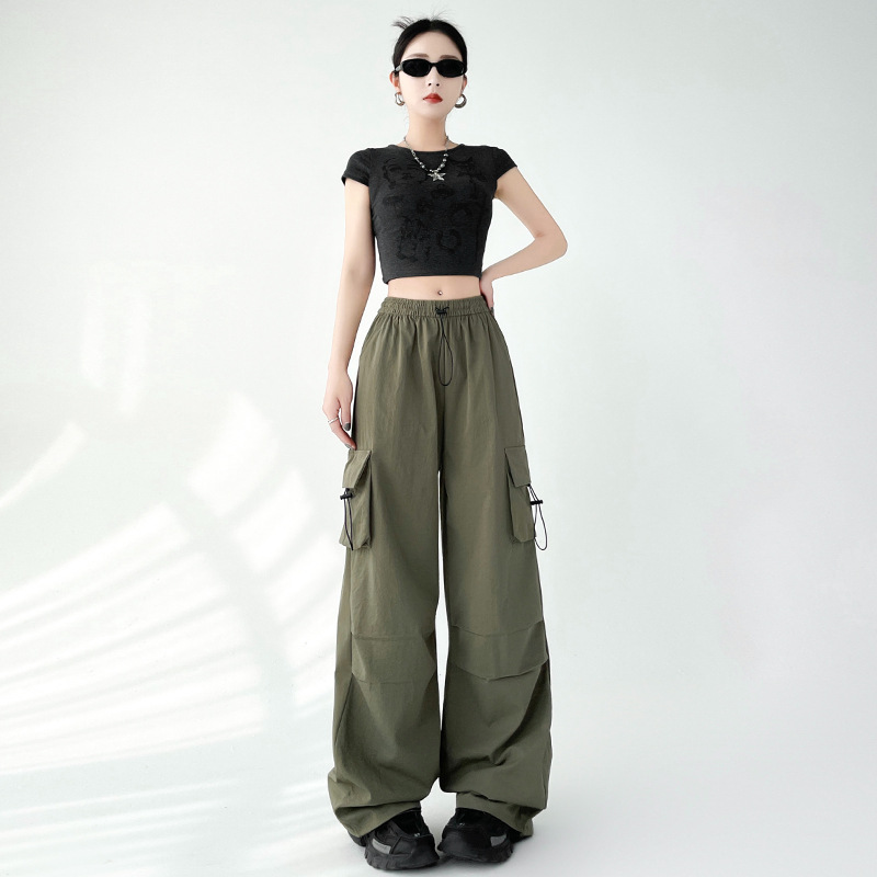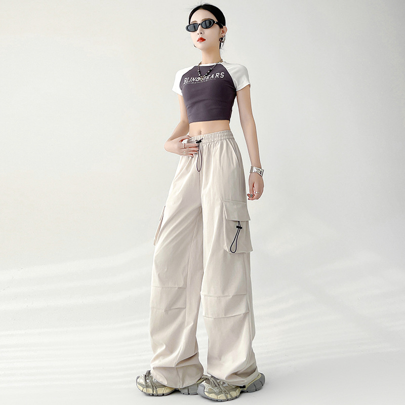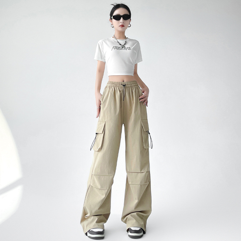 여성용 아메리칸 스타일 작업복 여름 2025 새로운 스타일의 작은 충전 바지 루즈 슬리밍 속건성 낙하산 스포츠 바지스토어 가기