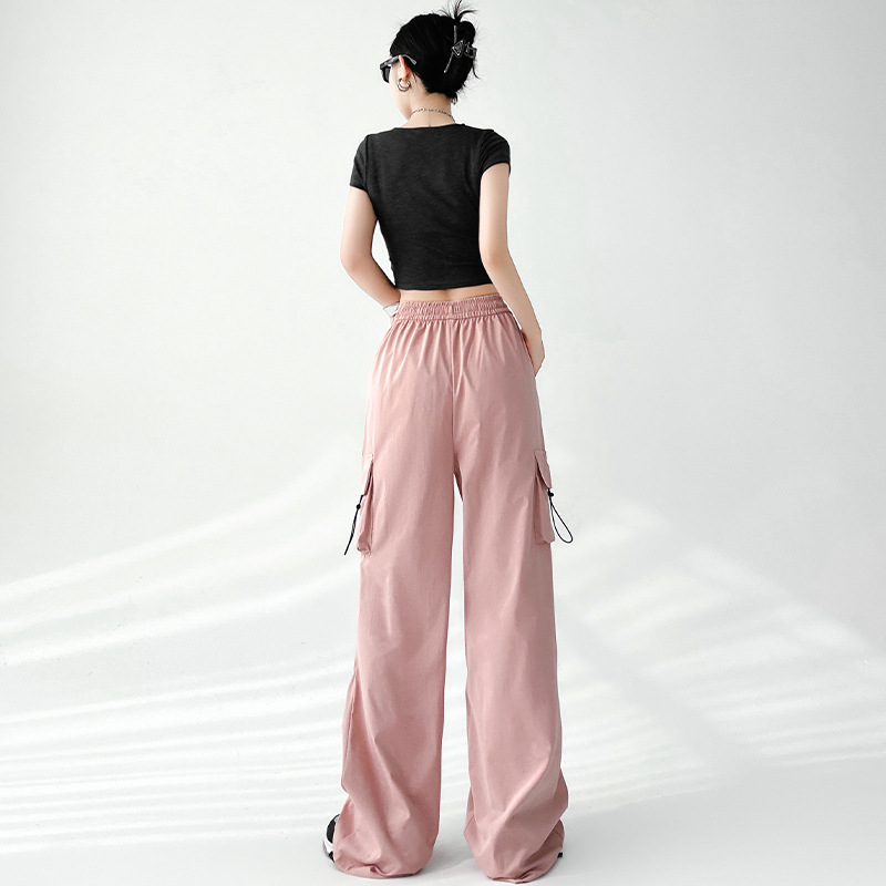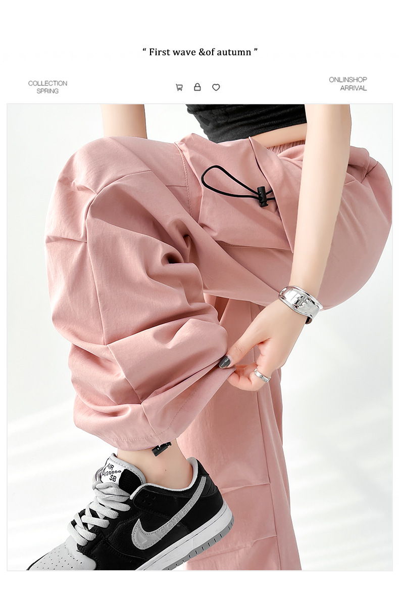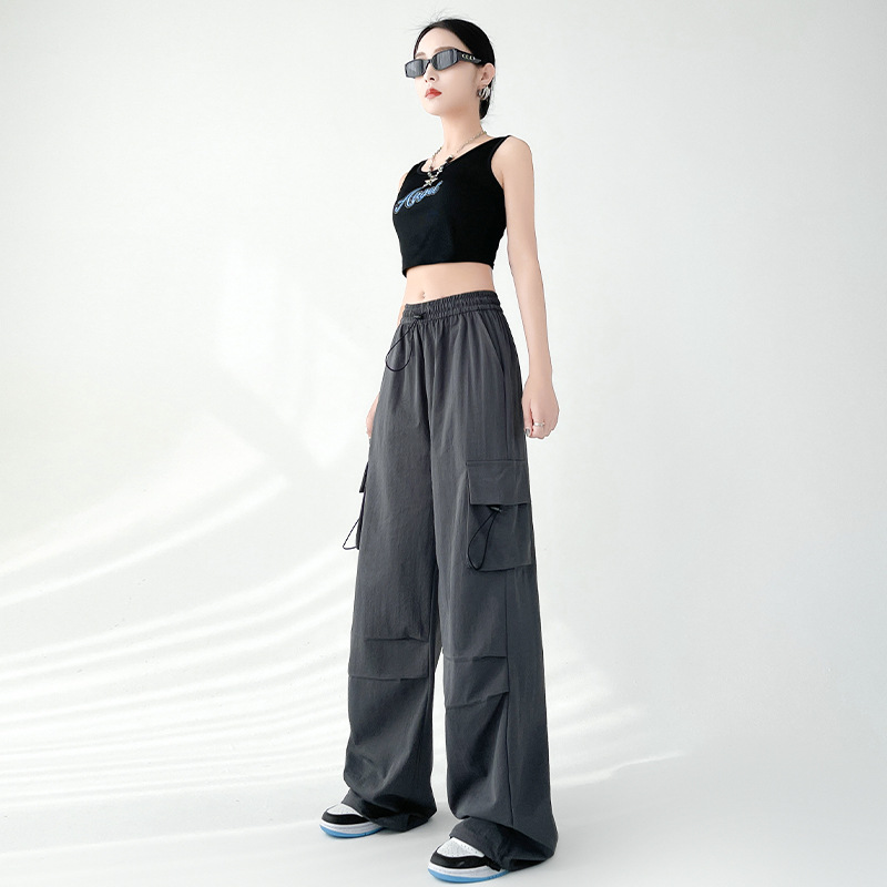 여성용 아메리칸 스타일 작업복 여름 2025 새로운 스타일의 작은 충전 바지 루즈 슬리밍 속건성 낙하산 스포츠 바지
