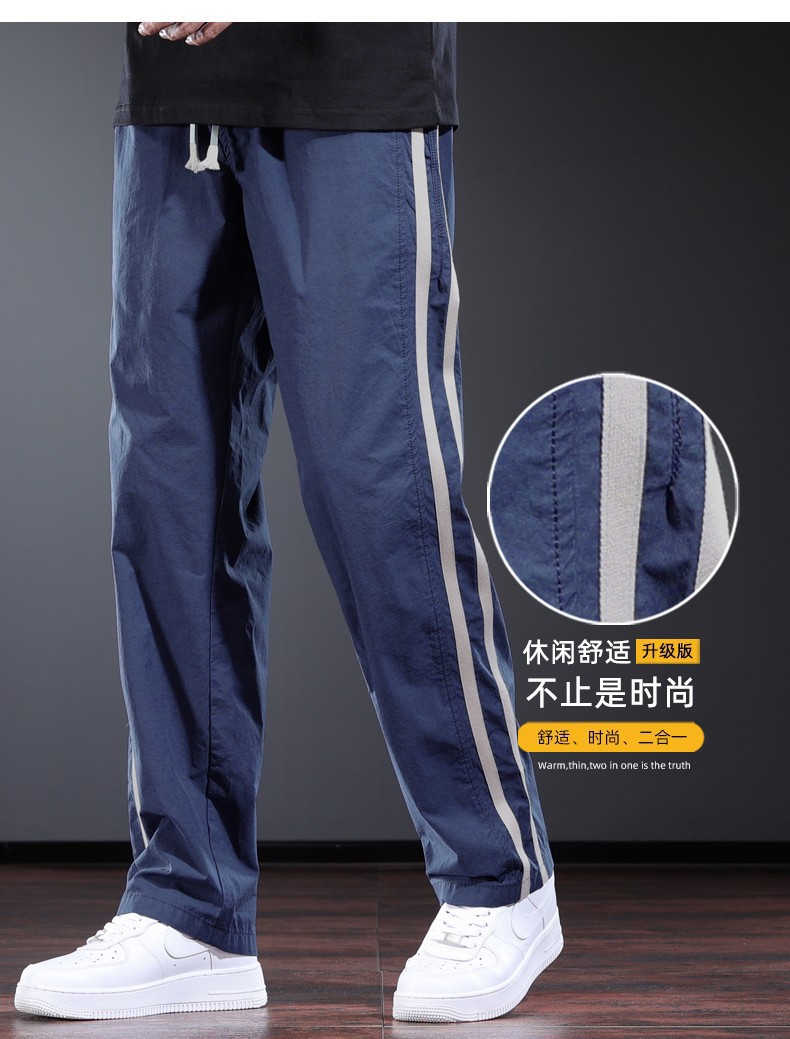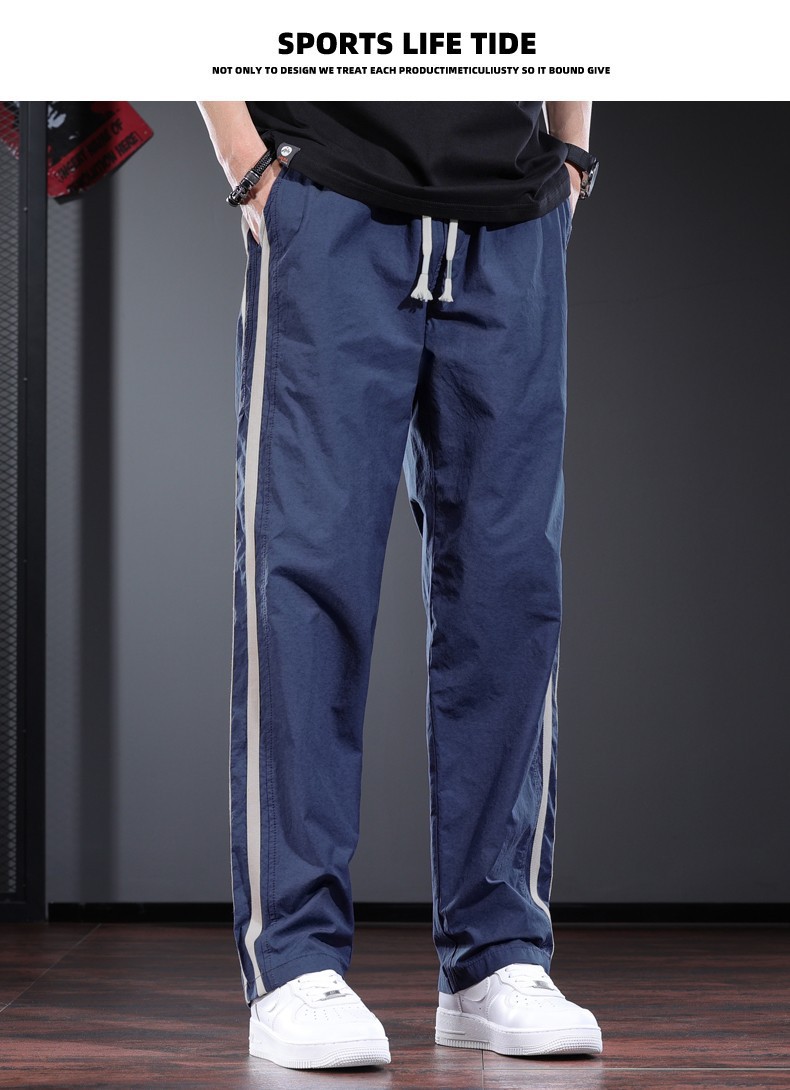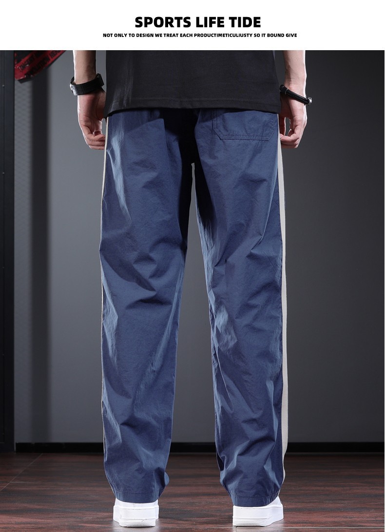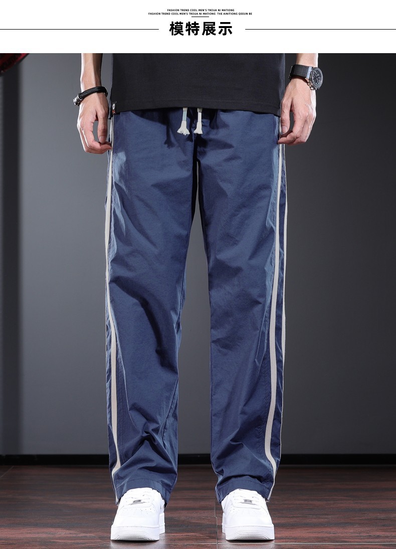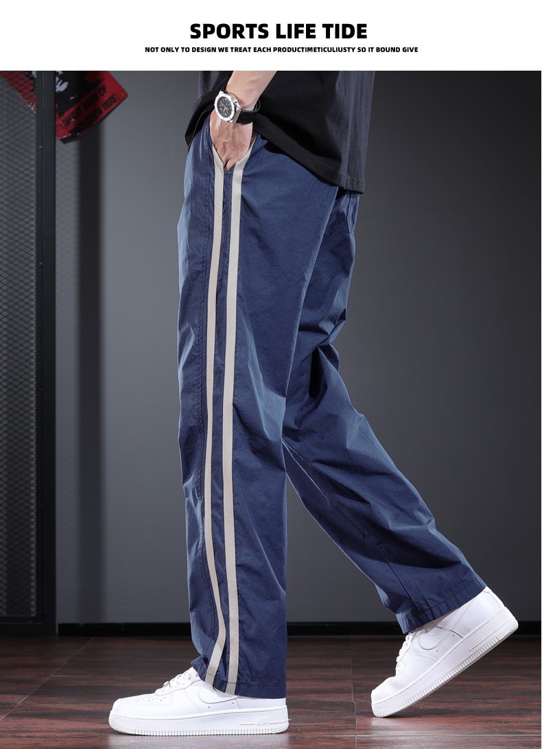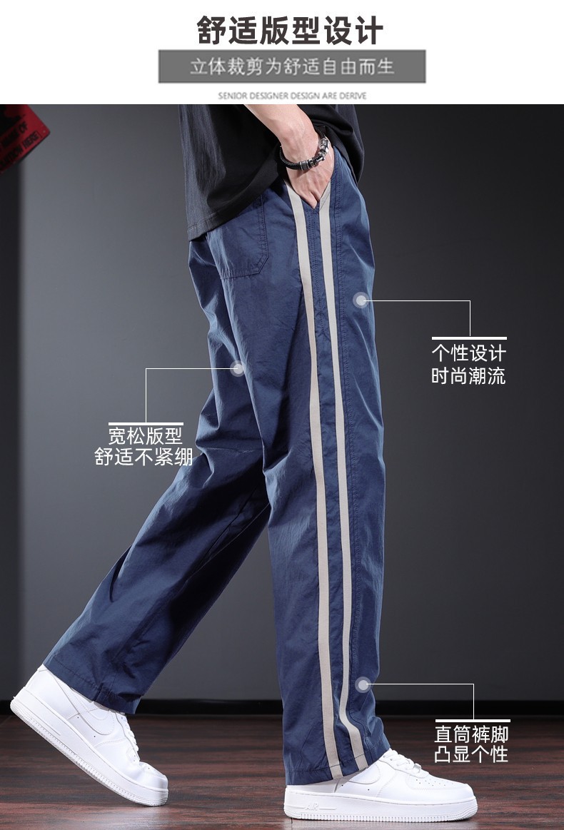 가장자리 측정 줄무늬 캐주얼 바지 남성용 여름 얇은 맞춤형 디자인 센스 루즈 스트레이트 바지 트렌디 브랜드 블루 남성용 바지
