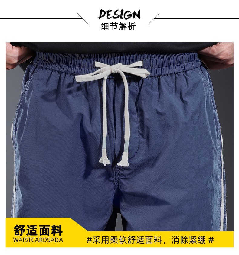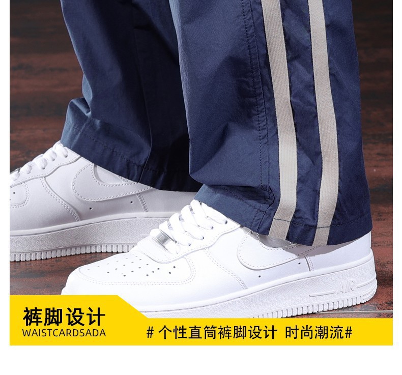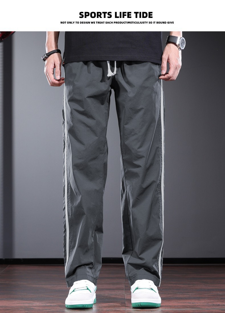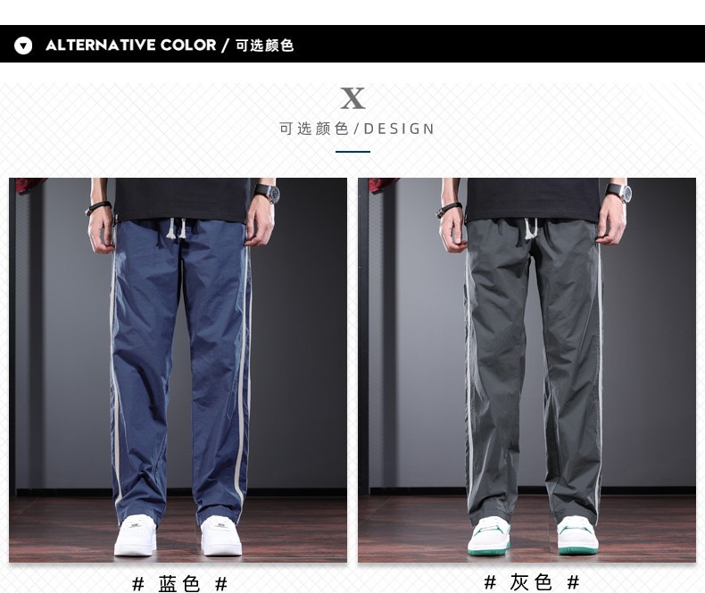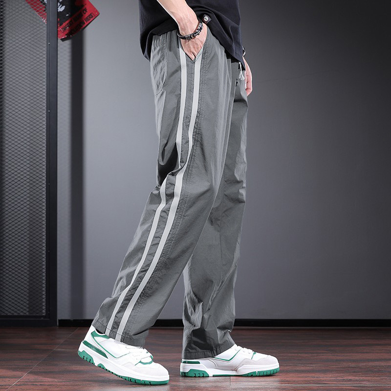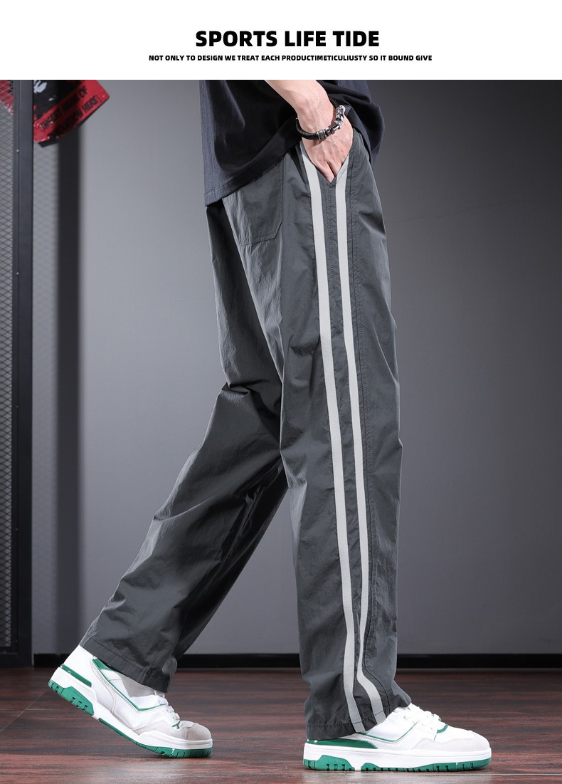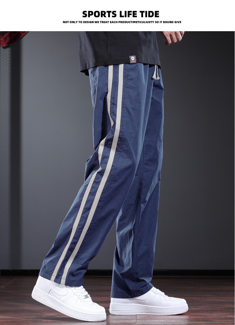 가장자리 측정 줄무늬 캐주얼 바지 남성용 여름 얇은 맞춤형 디자인 센스 루즈 스트레이트 바지 트렌디 브랜드 블루 남성용 바지